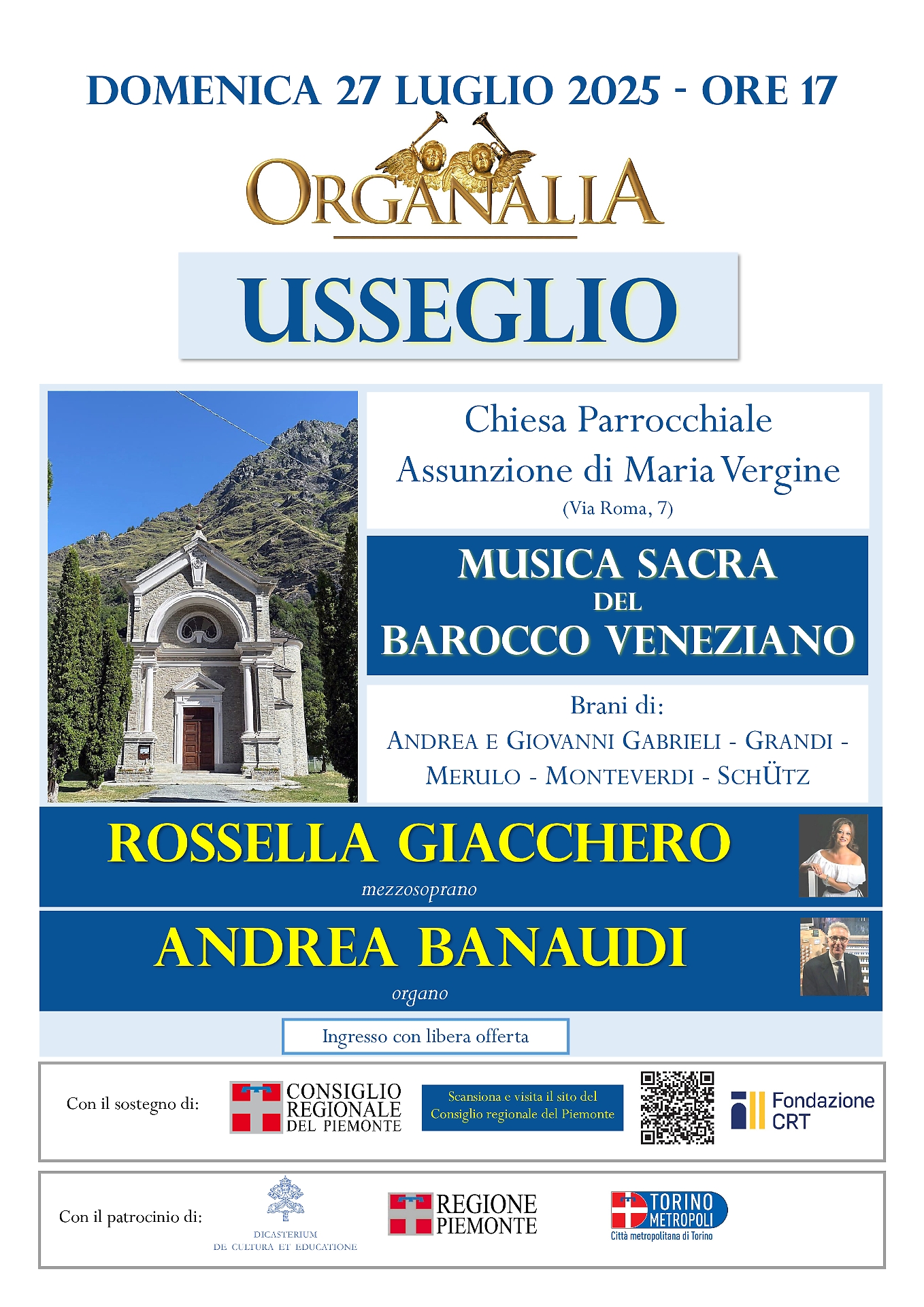 L’ultimo evento della stagione è previsto per domenica 27 luglio alle 17 nella chiesa dell’Assunzione di Maria Vergine a Usseglio. Qui l’organista Andrea Banaudi, già noto al pubblico della rassegna per le sue raffinate esecuzioni storiche, accompagnerà il mezzosoprano Rossella Giacchero in un programma intitolato alla grande musica sacra del barocco veneziano. Una scelta che porta il pubblico indietro nei secoli, nel cuore di una tradizione musicale che ha fatto scuola in Europa e che tra il XVI e il XVII secolo ha prodotto capolavori assoluti.