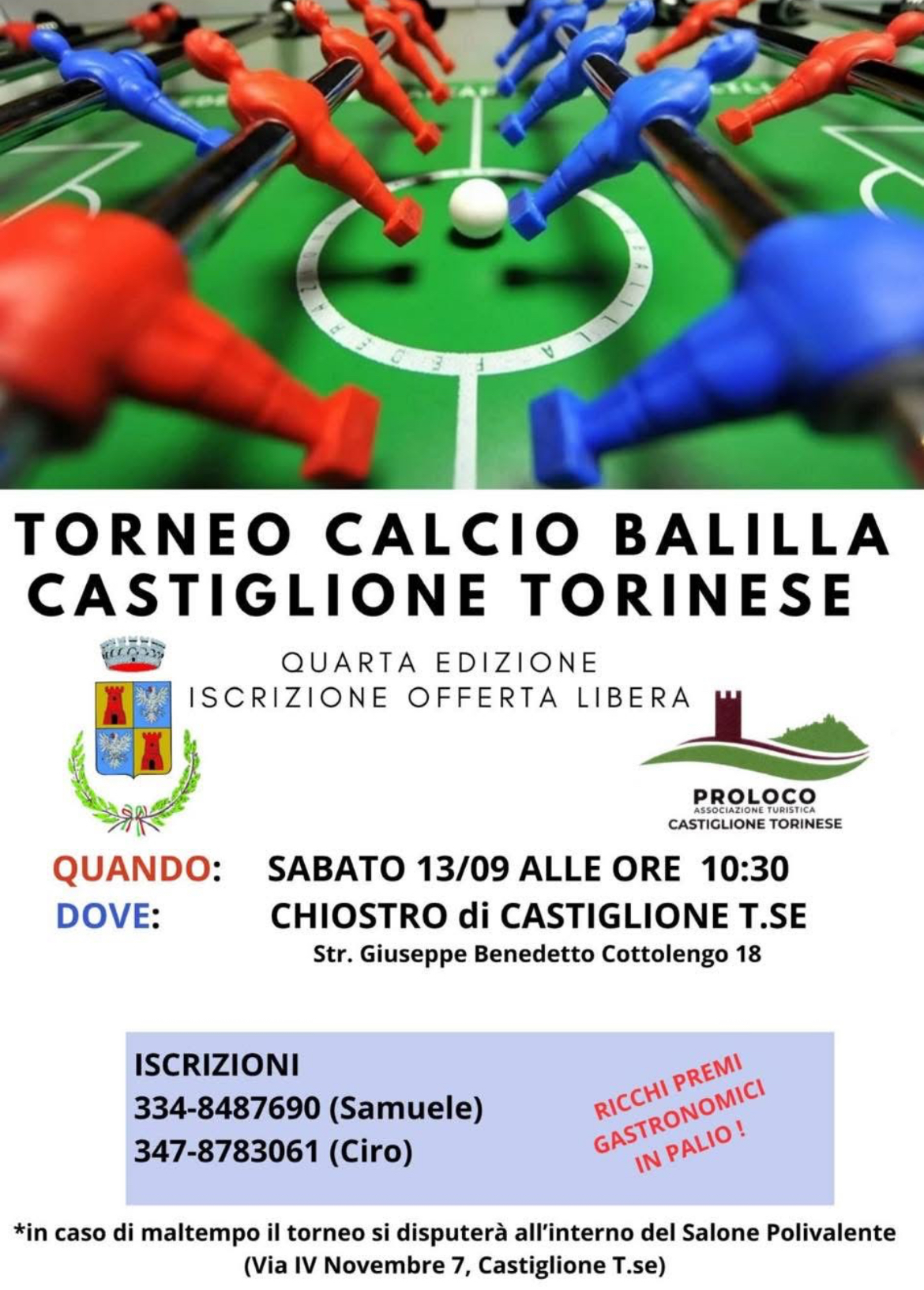 Le palline sono pronte, le stecche lucidate, l’adrenalina inizia a salire. Castiglione Torinese si prepara a trasformare il suo centro storico in un’arena per veri campioni… di calcio balilla. Sabato 13 settembre, con fischio d’inizio alle ore 10:30, andrà in scena la quarta edizione del Torneo di Calcio Balilla, una manifestazione sempre più amata, organizzata dalla Pro Loco in collaborazione con il Comune.