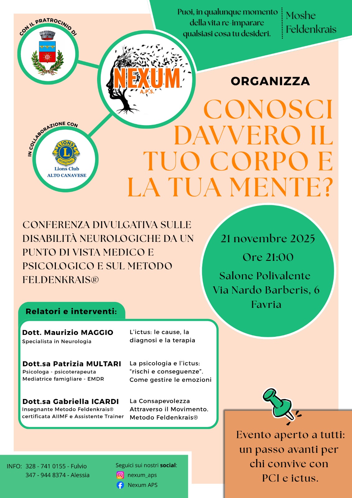 È da questo desiderio che nasce l’iniziativa dell’Associazione Nexum A.P.S., che con passione e impegno organizza una conferenza divulgativa aperta a tutti, dedicata a chi vive, o accompagna, situazioni di disabilità neurologica.