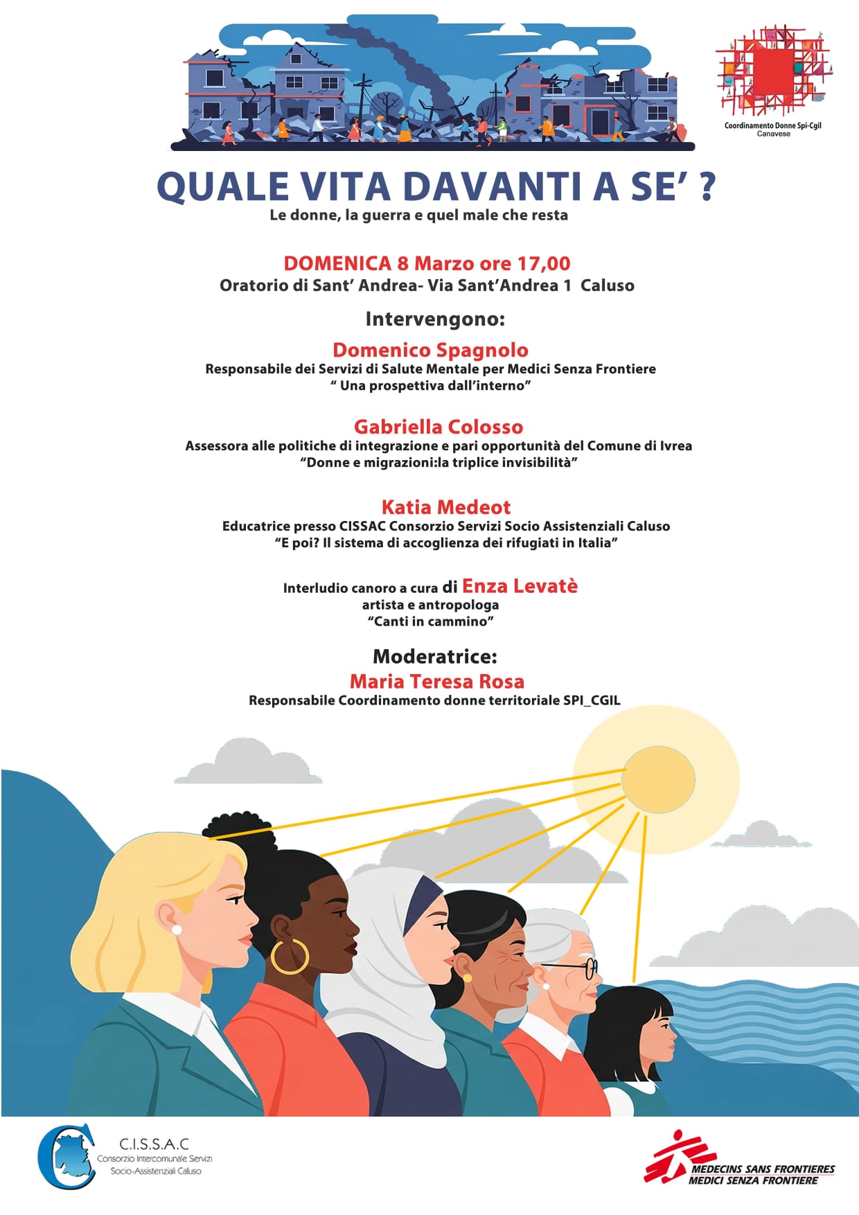 Sono previsti gli interventi di Gabriella Calosso, assessora alle Politiche di Integrazione del Comune di Ivrea, che affronterà il tema della “triplice invisibilità” delle donne migranti, e di Katia Medeot, educatrice del Cissac.