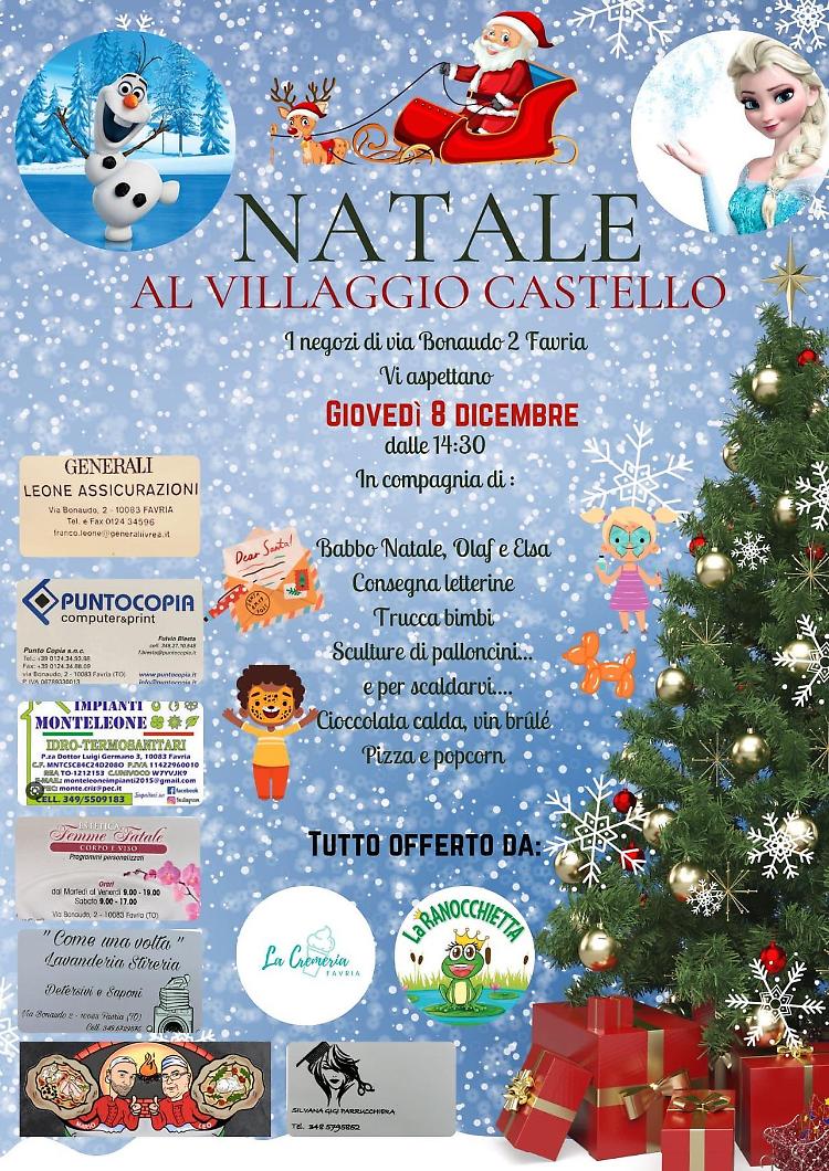 I negozi di via Bonaudo 2, Favria vi aspettano giovedì 8 dicembre dalle 14,30 in compagnia di Babbo Natale, Olaf e Elsa. Consegna letterine, trucca bimbi, sculture di palloncini e per scaldarvi cioccolata calda e vin brulè, pizza e pop corn. Quest’anno 8 DICEMBRE A FAVRIA-VILLAGGIO CASTELLO in via Bonaudo 2 fatevi un dono speciale. Venite giovedì 8 dicembre dalle 14,30per condividere l’allegria con le attività commerciali: Generali Leone assicurazioni, Puntocopia, impianti Monteleone, Femme Fatale, Come una volta lavanderia stireria, pizzeria da Leo, Silvana Gigi parrucchiera, la Cremeria, la Ranocchietta che Vi augurano con tutto il cuore, che la gioia dell'avvento porti pace ed amore a te e ai tuoi cari. Venite e non mancate perché lo spirito del S. Natale è nell'aria, una gioia innata nel cuore. Auguri di Babbo Natale.