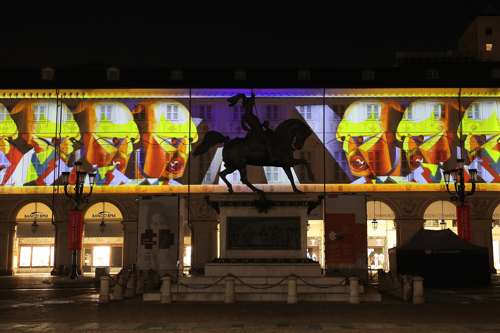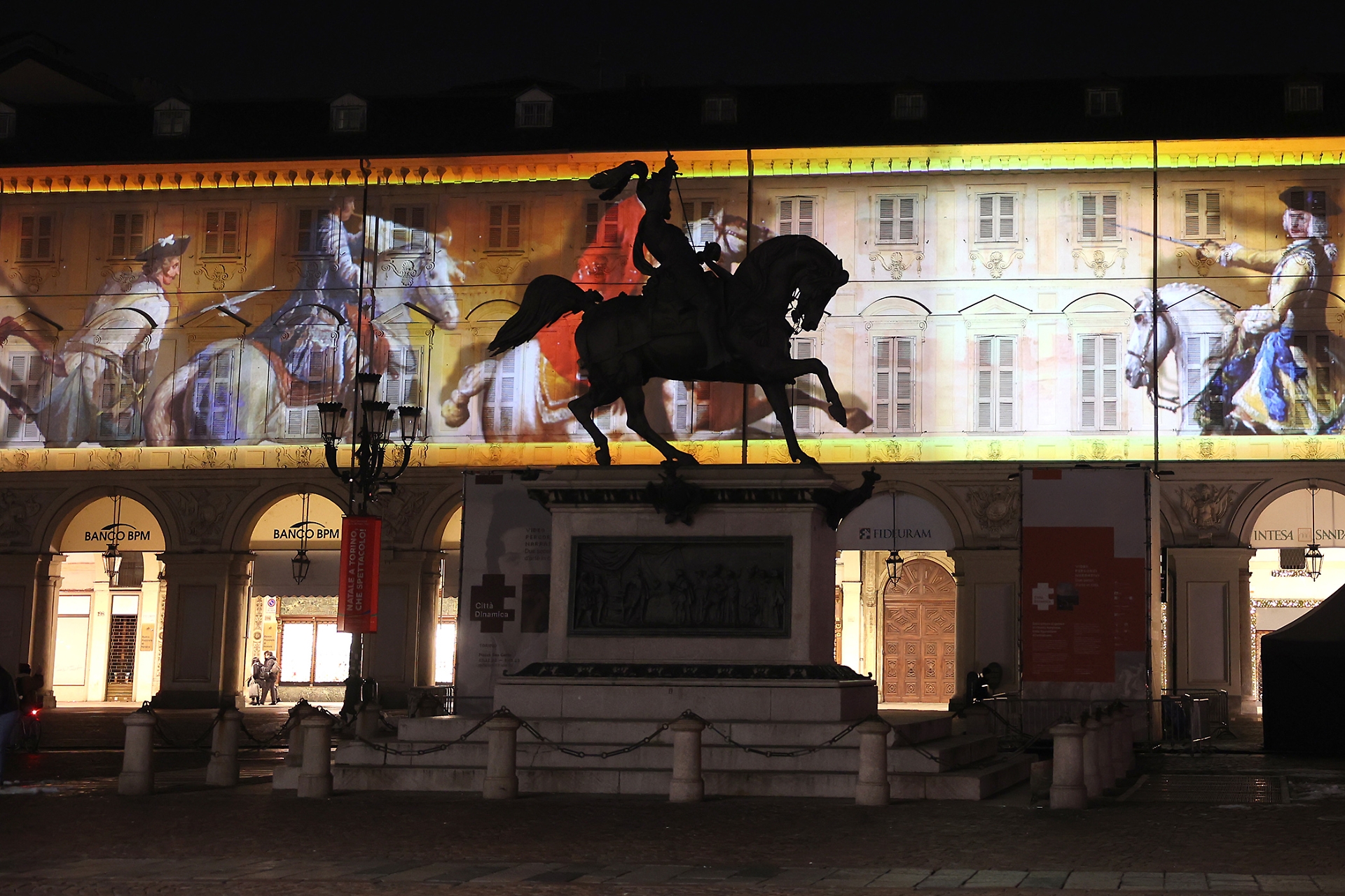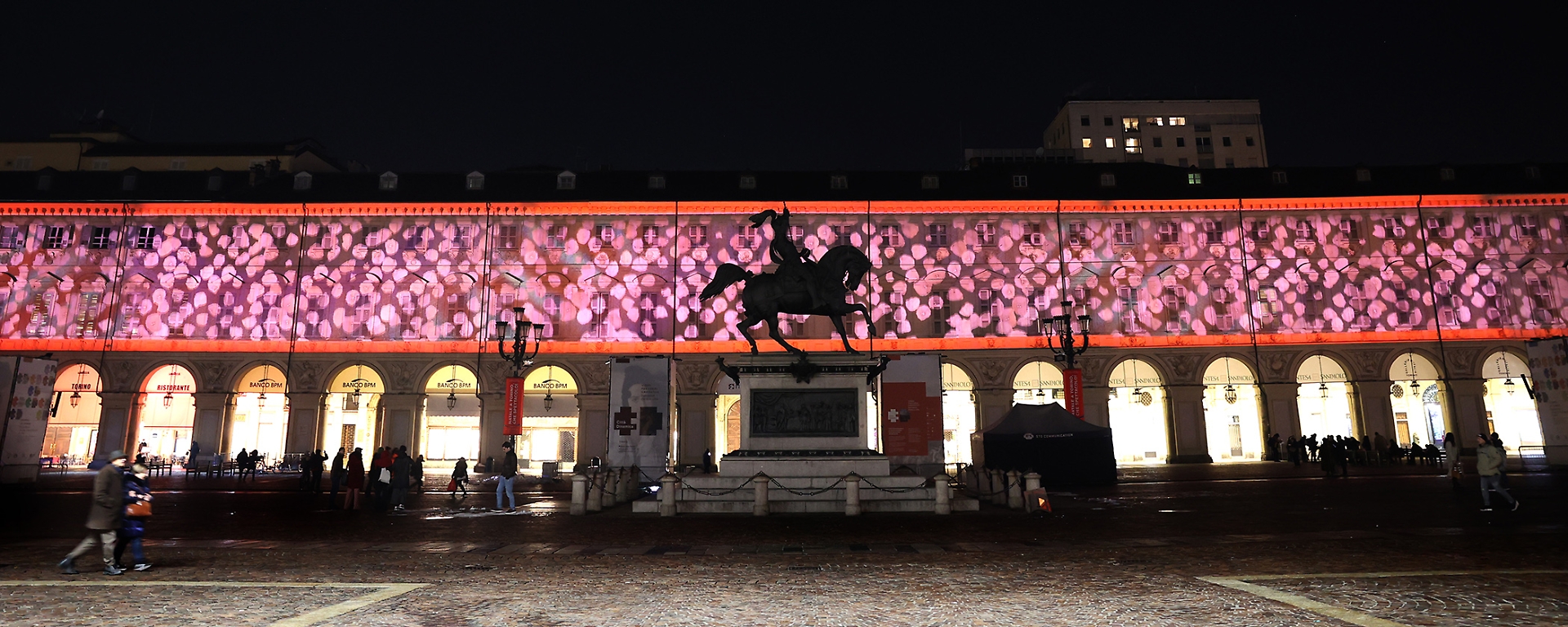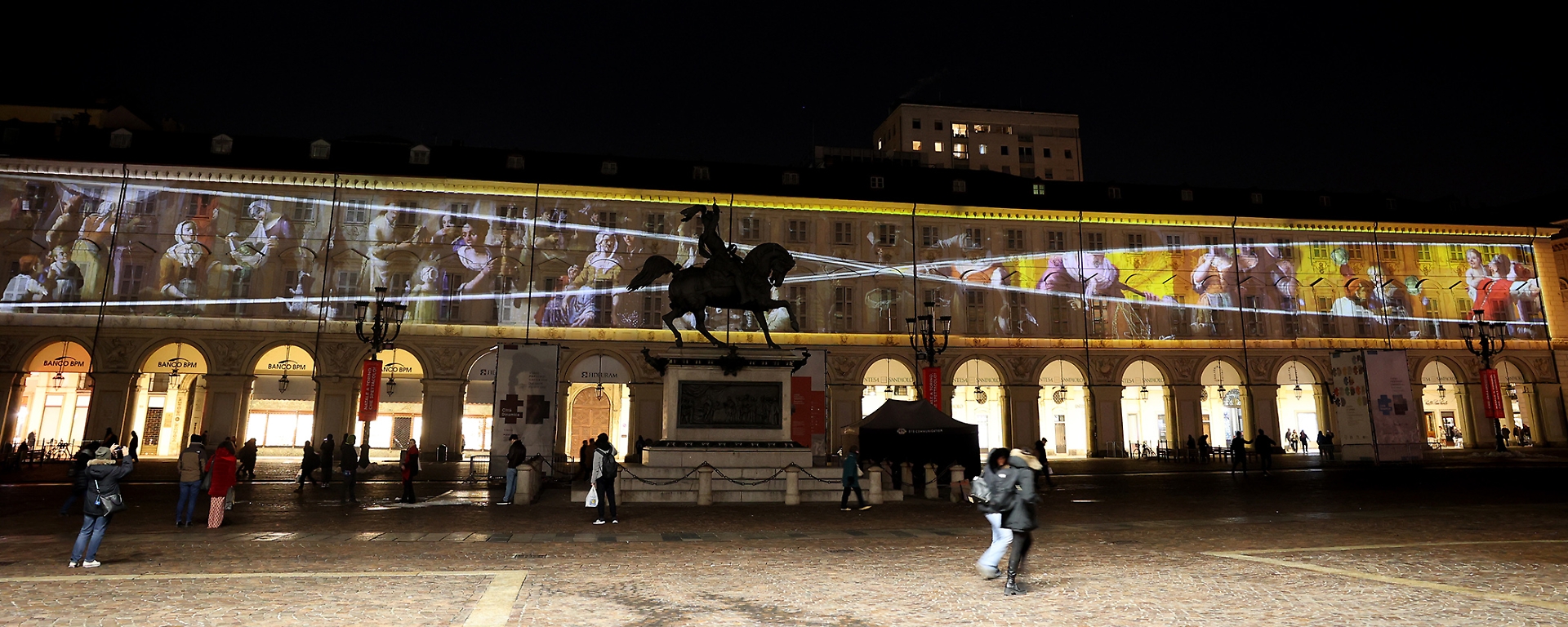 Emblema della rigorosa eleganza sabauda, la piazza, una tra le più belle e importanti del capoluogo piemontese, ospita fino all’8 gennaio 2023 un video percorso narrativo proiettato sulle facciate dei palazzi del lato ovest.