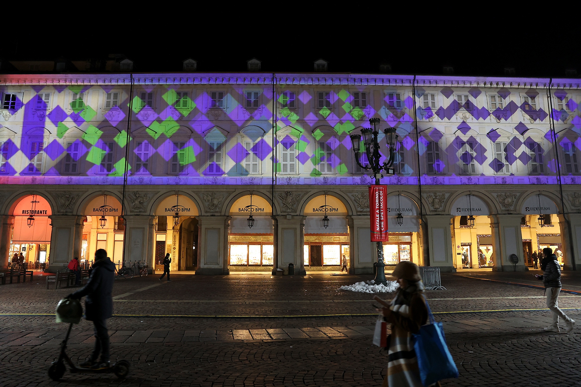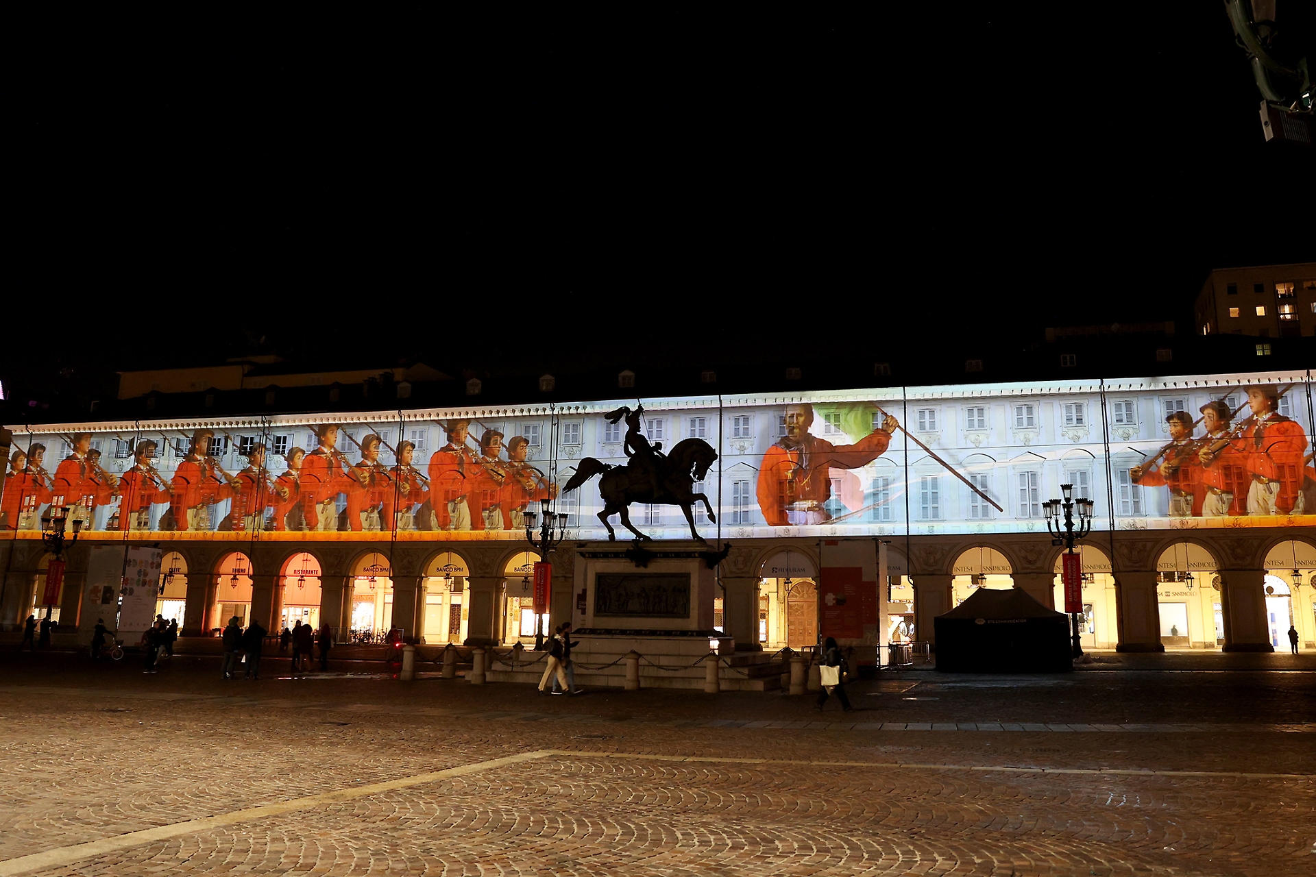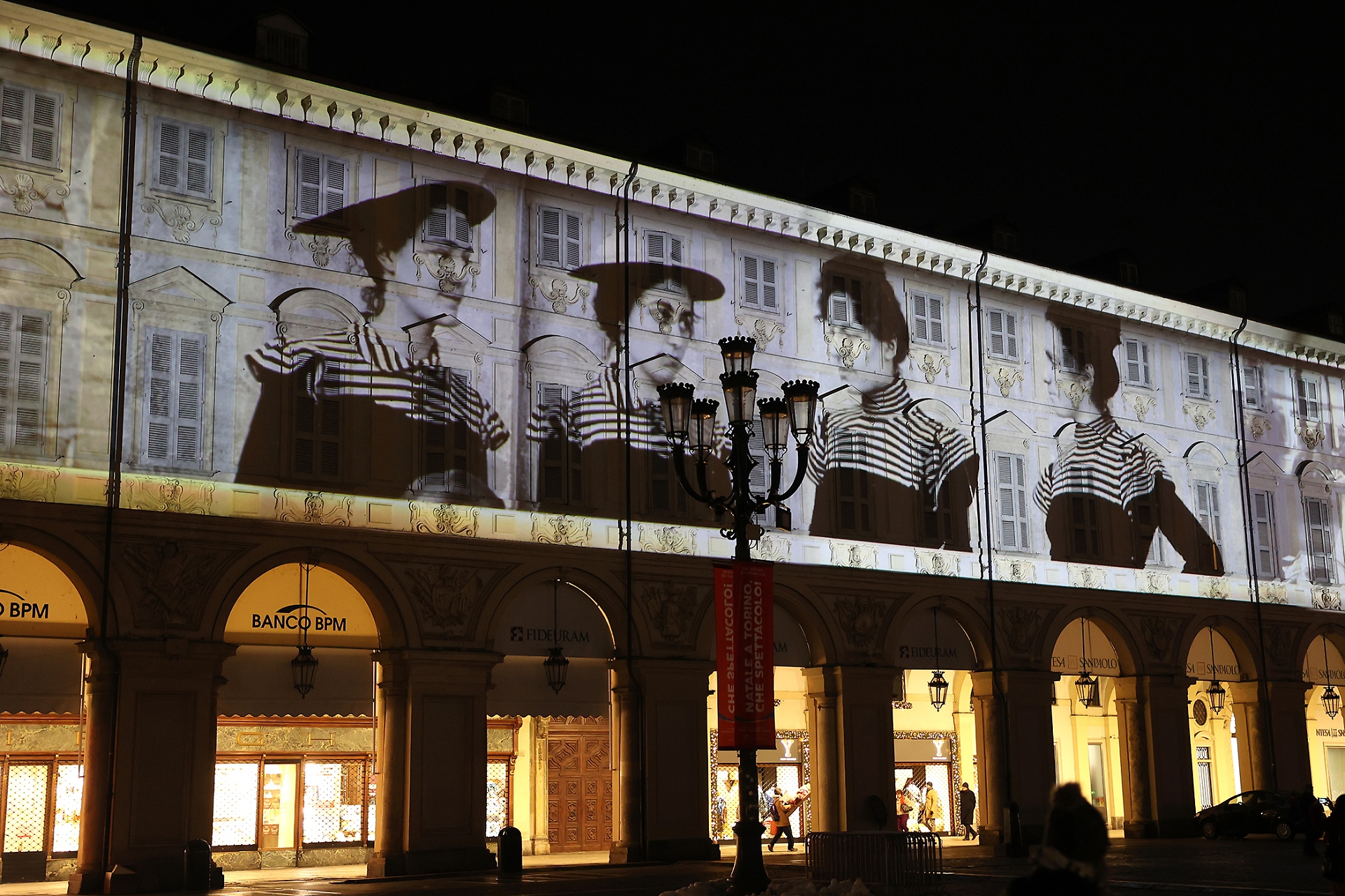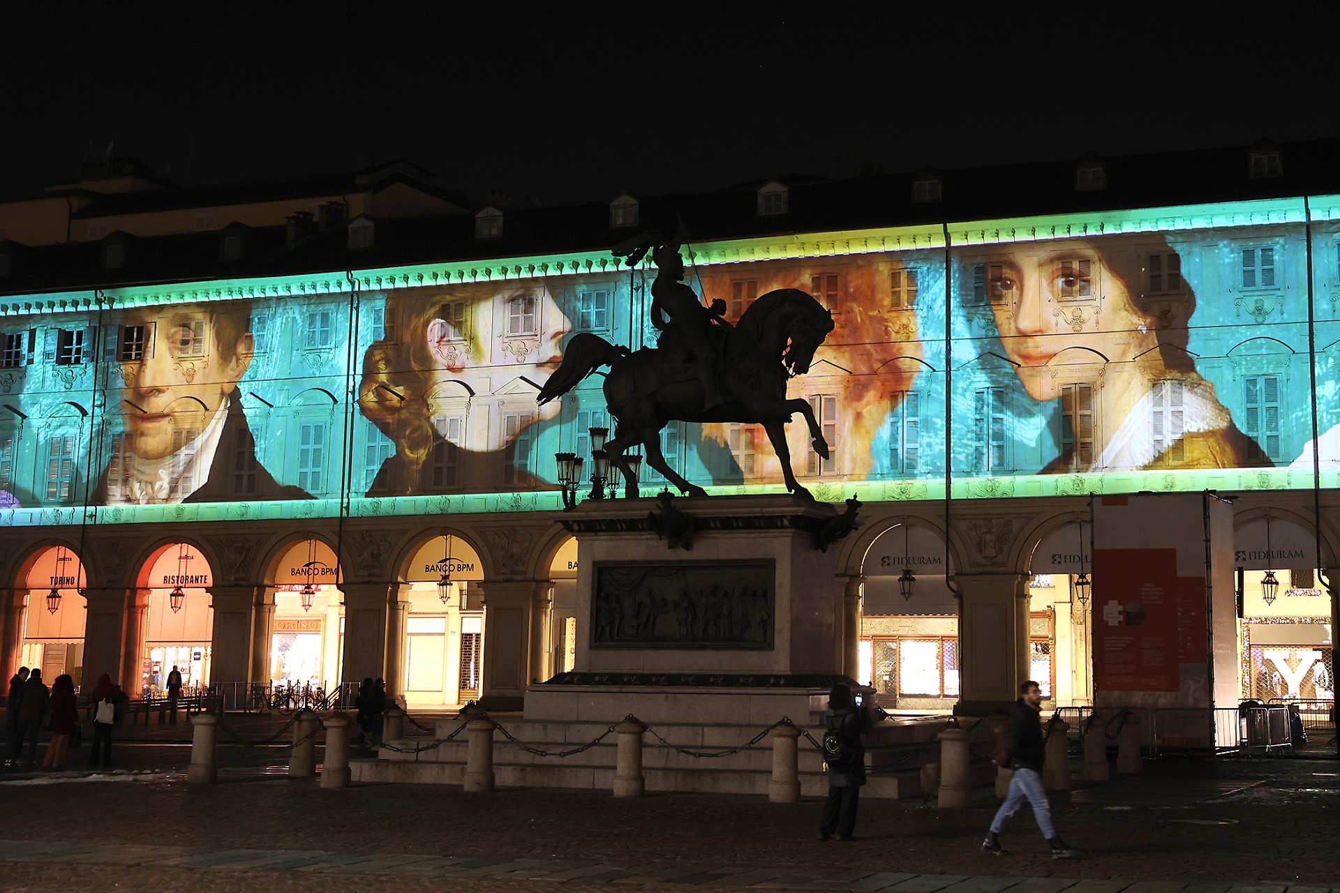 Emblema della rigorosa eleganza sabauda, la piazza, una tra le più belle e importanti del capoluogo piemontese, ospita fino all’8 gennaio 2023 un video percorso narrativo proiettato sulle facciate dei palazzi del lato ovest.