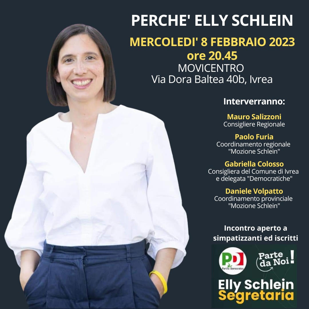 “Perchè Elly Schlein? - commentano gli organizzatori - Noi scegliamo #EllySchlein perché ha parole chiare e coraggiose su: lavoro, transizione ecologica e giustizia sociale, sempre al centro del suo pensiero e del suo agire politico. Perché fa camminare insieme diritti civili e diritti sociali. Perché sa parlare a tutte le generazioni e a tutte le culture, e allarga lo sguardo verso altri mondi. Perché è una spinta innovativa utile al #partitodemocratico. Perché abbiamo bisogno di immaginare un futuro nuovo!”.