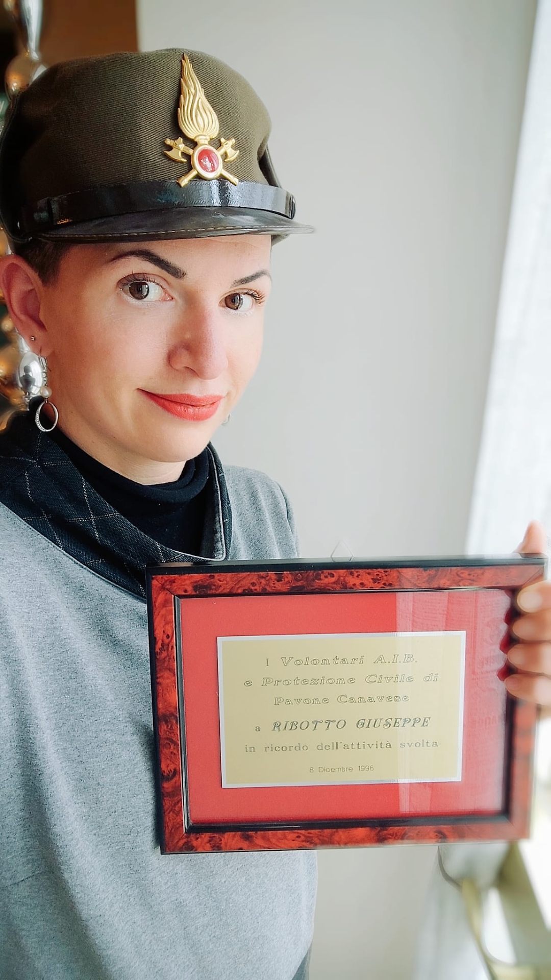 VALENTINA BESSOLO con un vecchio cappello dell'Aib appartenuto a suo nonno