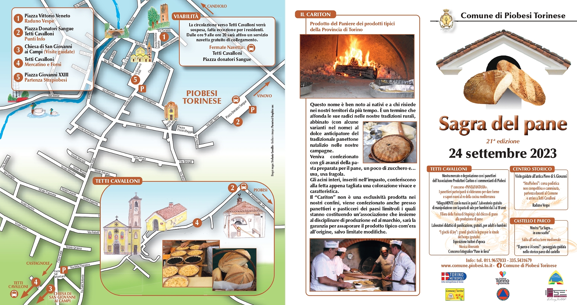 La Sagra del Pane di Piobesi Torinese continua il suo percorso di crescita, con l’ormai tradizionale patrocinio della Città metropolitana di Torino. La Sagra, nata quasi timidamente attorno all’antico forno della borgata di Tetti Cavalloni, è giunta alla ventunesima edizione e si è ricavata un suo spazio nel panorama delle manifestazioni legate ai prodotti tipici e alle tradizioni locali.