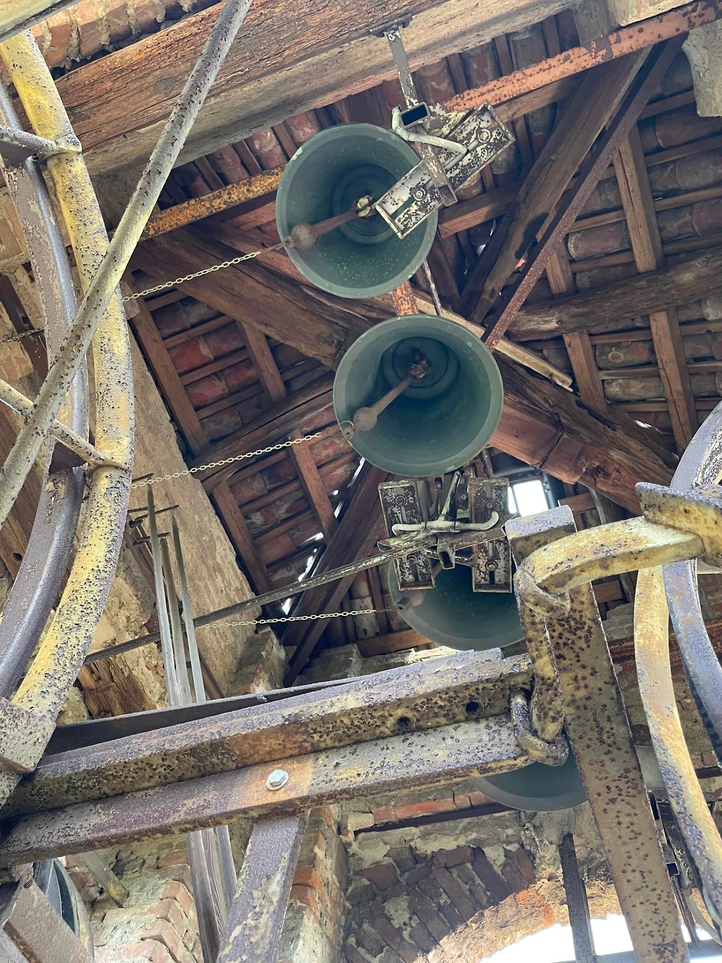 Il progetto di recupero delle campane di Bussolino è partito lo scorso maggio. Fino al mese di aprile, il concerto versava in uno stato di completo abbandono. Negli ultimi decenni, infatti, la torre campanaria era stata interessata da un lento processo di degrado che aveva causato l’invasione di rampicanti e l’accumulo di foglie secche e detriti all’interno della cella e del vano scale.