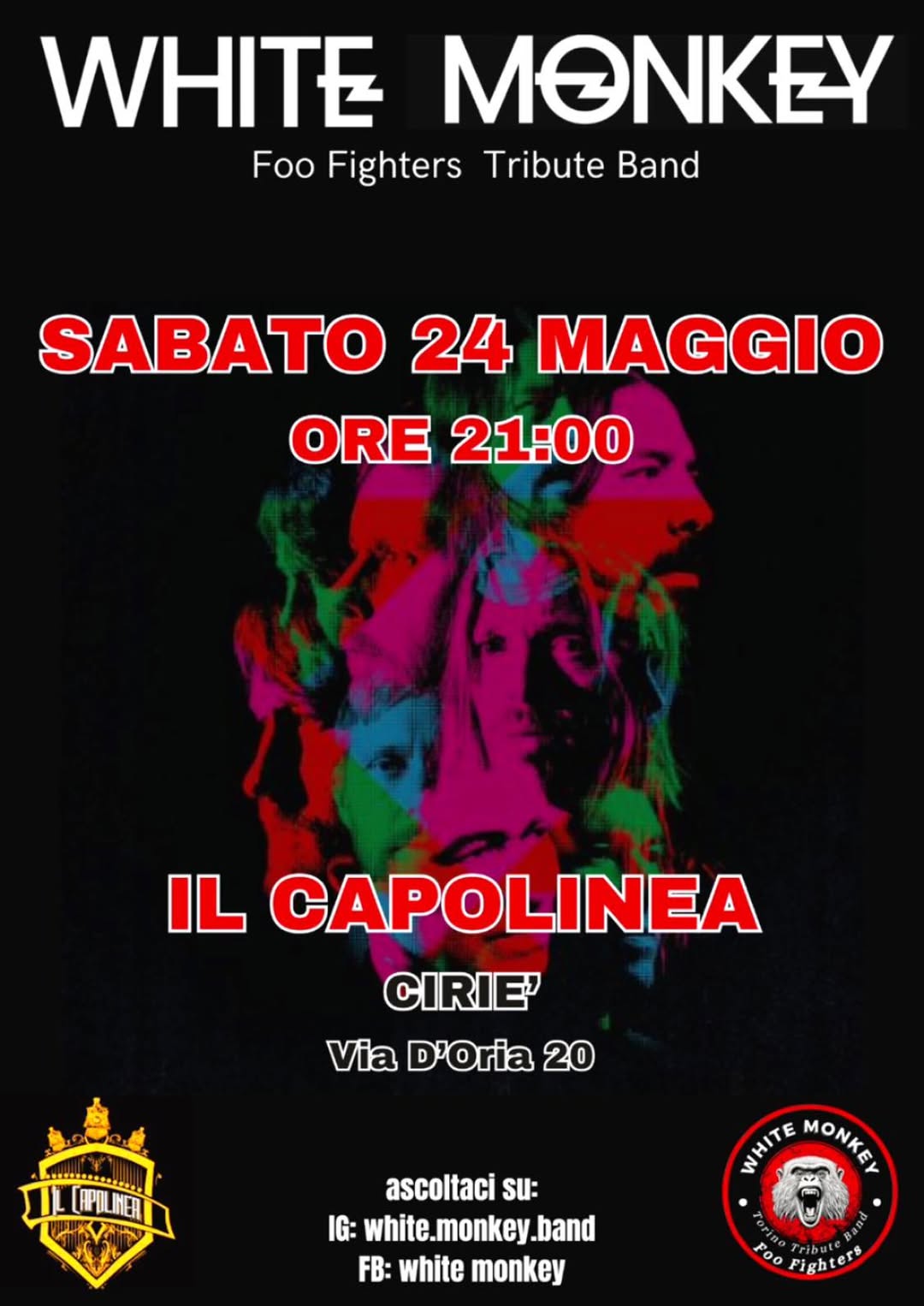 Sabato 24 maggio 2025, alle 21:30, l’urlo del rock esploderà a Ciriè grazie ai White Monkey, la più energica Foo Fighters Tribute Band di Torino. Il palco sarà quello de Il Capolinea, in via Andrea D’Oria 20, per un live gratuito che promette decibel, pogo e pura passione. L’ingresso è libero e le porte si aprono dalle 19:00: chi vuole potrà godersi una cena nel Pizza & Bistrot con menù alla carta, prima di farsi travolgere da riff e assoli senza respiro.