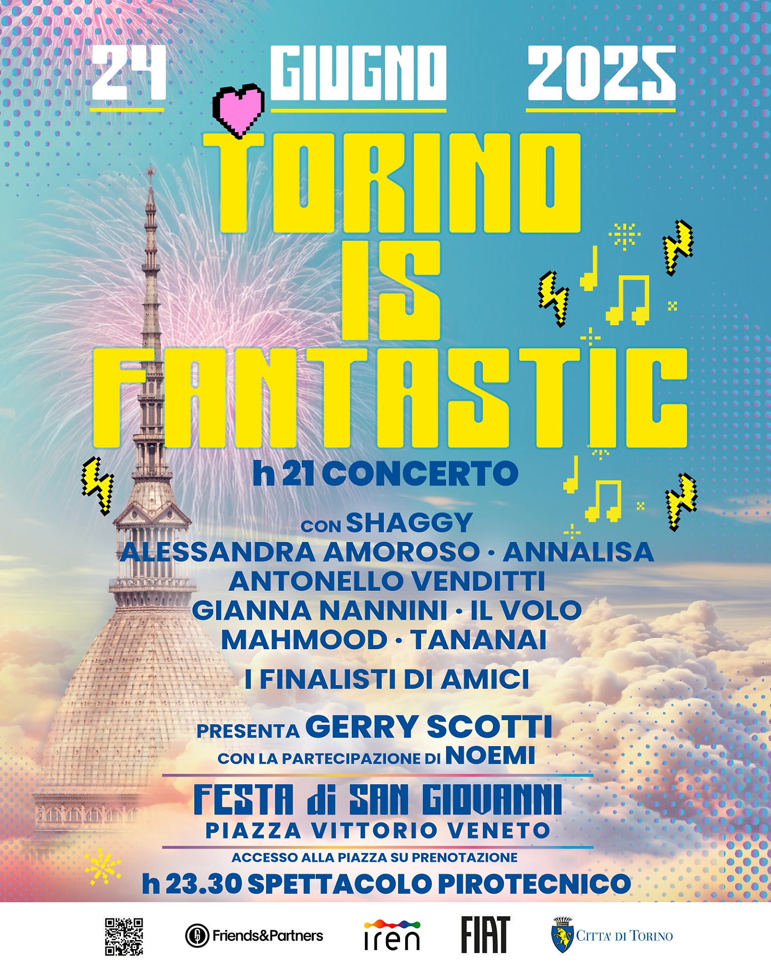 Il programma completo della festa è disponibile sul sito della Città di Torino e vede Fiat come main sponsor dell’evento clou, prodotto da Friends & Partner, con il sostegno di Iren e il coinvolgimento di decine di realtà associative torinesi.