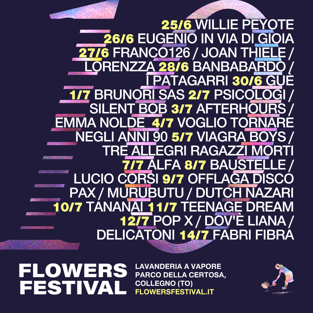 Collegno si prepara a un’estate bollente. Dal 25 giugno al 14 luglio, il Flowers Festival spegne dieci candeline e celebra la sua decima edizione con un cartellone che è un’esplosione di generi, generazioni e visioni musicali. Venticinque artisti in programma, più di sessantamila spettatori attesi, una sola promessa: fare della musica un rito collettivo, vivo, emozionante.