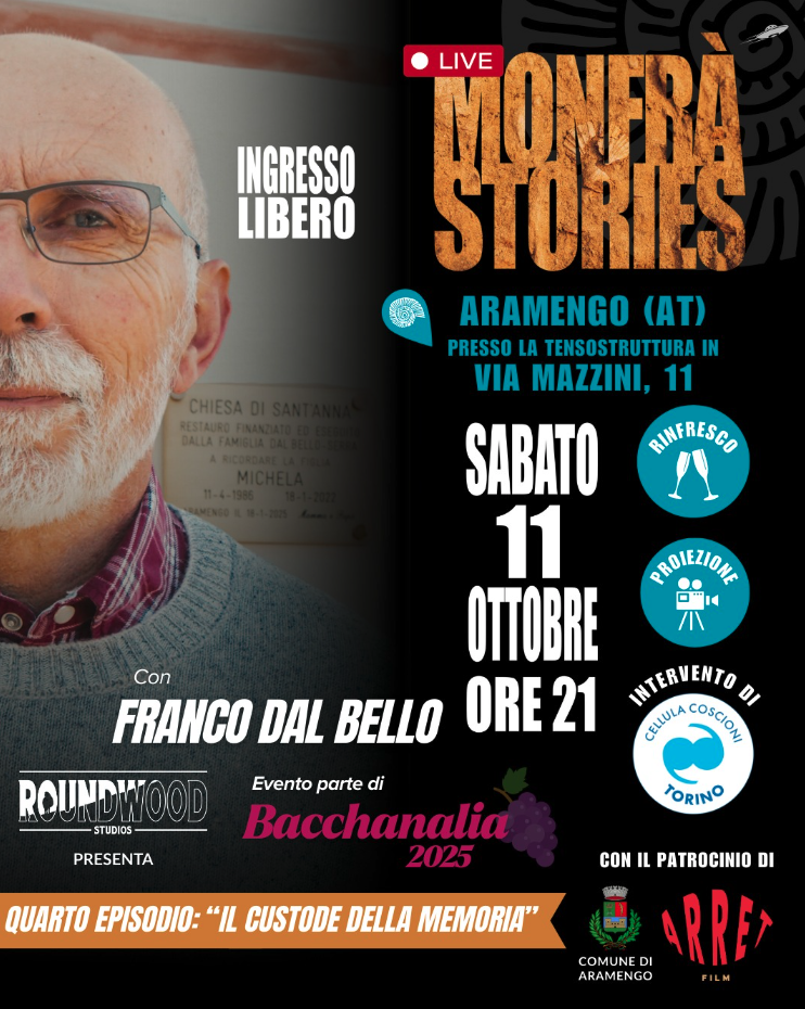 Ad Aramengo, tra le vigne e le case strette intorno al Municipio, sabato 11 ottobre non si celebra soltanto Bacchanalia, la festa dell’uva. Si celebra la vita. Quella che resiste, che nonostante tutto trova la forza di lasciare un segno. Nella tensostruttura allestita in piazza, andrà in scena l’ultimo episodio della prima stagione di Monfrà Stories: “Il custode della memoria”.