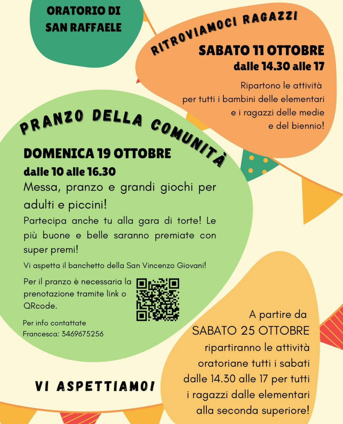 L’Oratorio di San Raffaele si prepara a inaugurare una nuova stagione di appuntamenti dedicati ai giovani e alle famiglie. Sabato 11 ottobre, dalle 14.30 alle 17, ripartono ufficialmente le attività oratoriane rivolte ai bambini delle scuole elementari e ai ragazzi delle medie e del biennio.