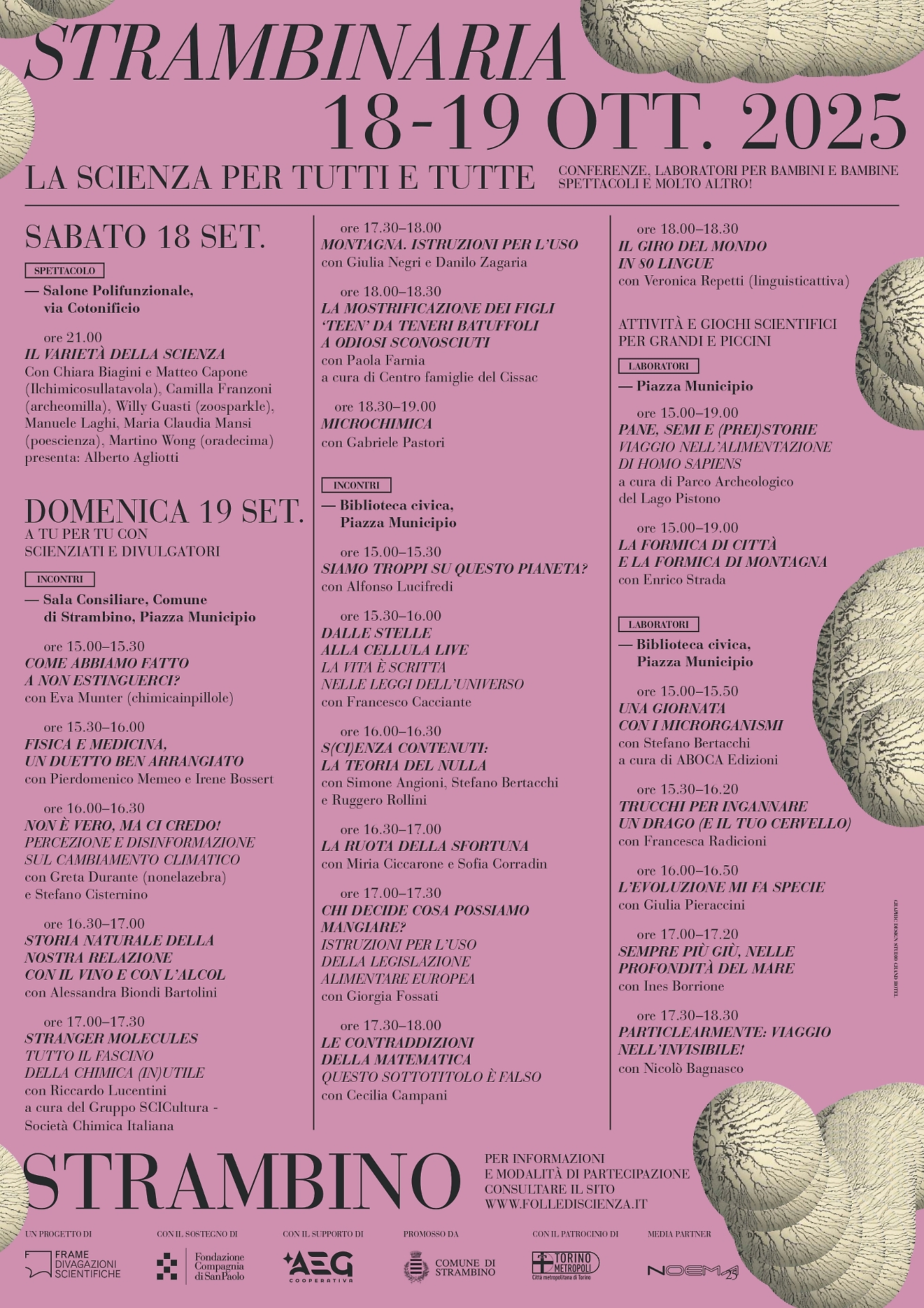 Dal 17 al 19 ottobre 2025, Strambino si trasformerà nuovamente nel cuore pulsante della scienza italiana con l’ottava edizione di “Strambinaria – Folle di Scienza”, il festival che riunisce ogni anno divulgatori, ricercatori, studenti e appassionati per un lungo weekend di incontri, laboratori, spettacoli e riflessioni sul futuro della comunicazione scientifica.