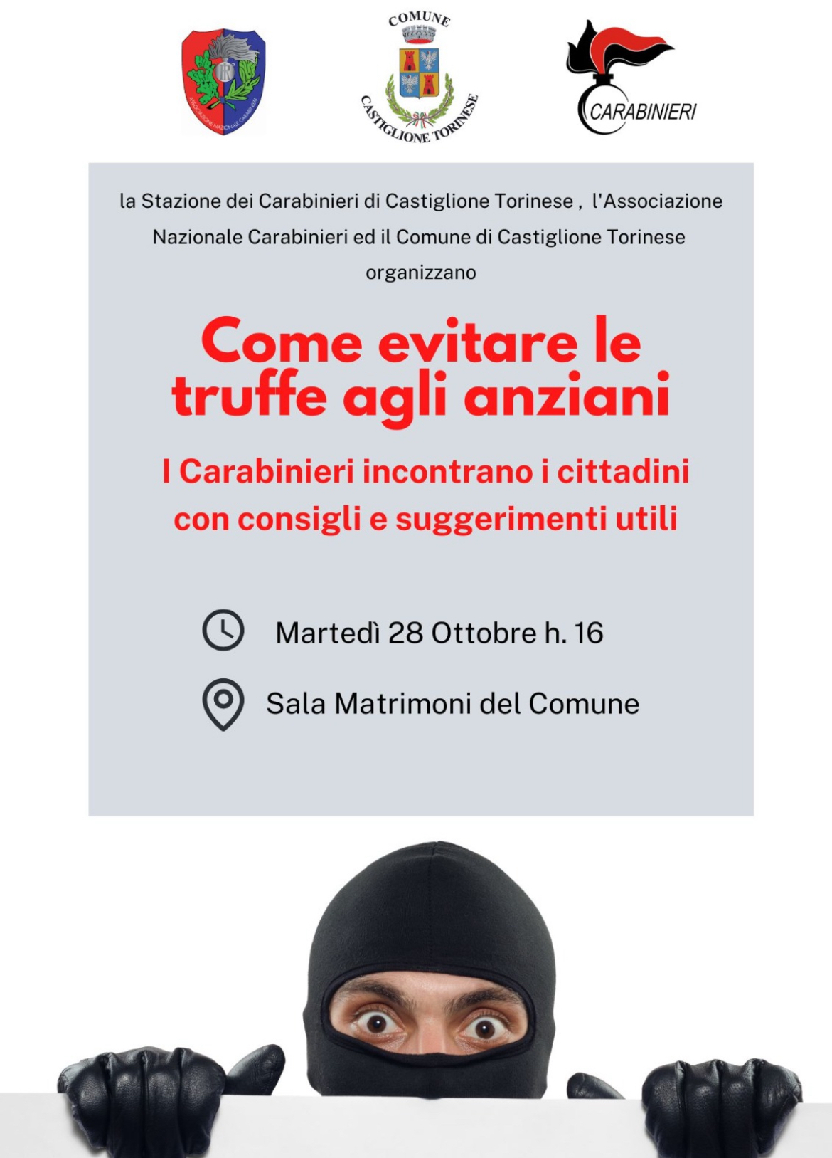 È così che agiscono i truffatori degli anziani, sempre più abili e spietati. Per questo i Carabinieri di Castiglione Torinese, insieme al Comune e all’Associazione Nazionale Carabinieri, hanno deciso di affrontarli con l’unica arma davvero efficace: la prevenzione.