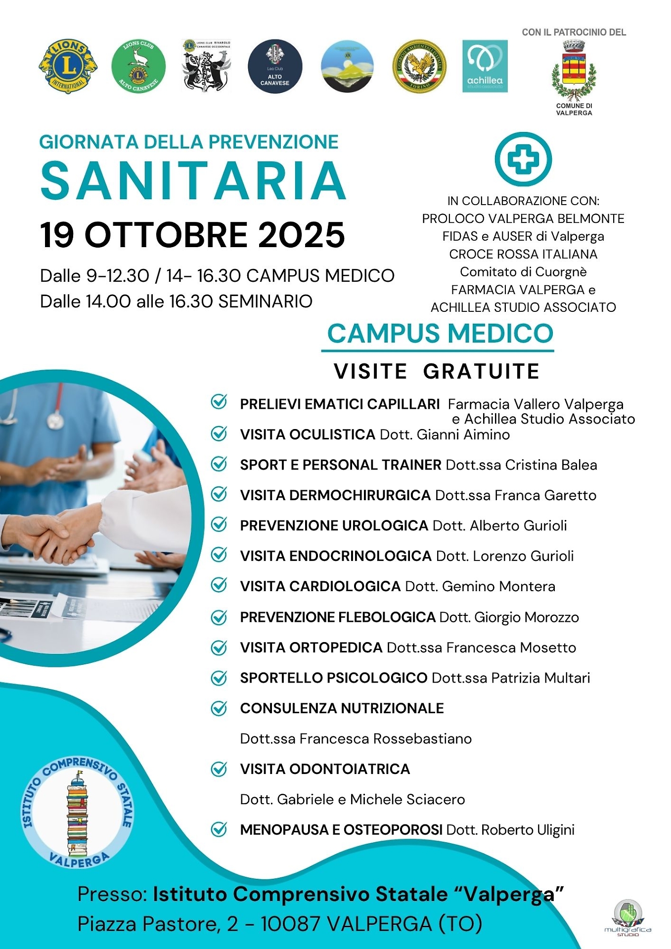 Una domenica interamente dedicata alla salute, alla prevenzione e alla solidarietà. Il 19 ottobre, a Valperga, si è svolta la Giornata della Prevenzione Sanitaria 2025, un’iniziativa che ha trasformato l’Istituto Comprensivo Statale in un vero e proprio centro medico diffuso, dove cittadini di ogni età hanno potuto accedere gratuitamente a controlli e visite specialistiche.