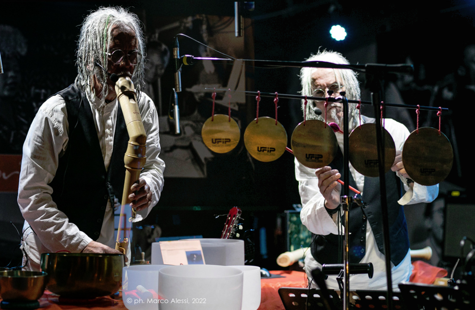 Lo spettacolo di Favria porterà sul palco un dialogo armonico di linguaggi artistici: Angelo Greco, al flauto basso, campane di cristallo e voce narrante; Stelvio Selva, pianoforte; Carmine Bandroco, chitarra; Francesca Selva e Noemi Chiarella, voci; il gruppo di danza Frangiflutti, diretto da Giuliana Peretti; Armando Barberio, ballerino e poledancer; Rita Rashid, poetessa.