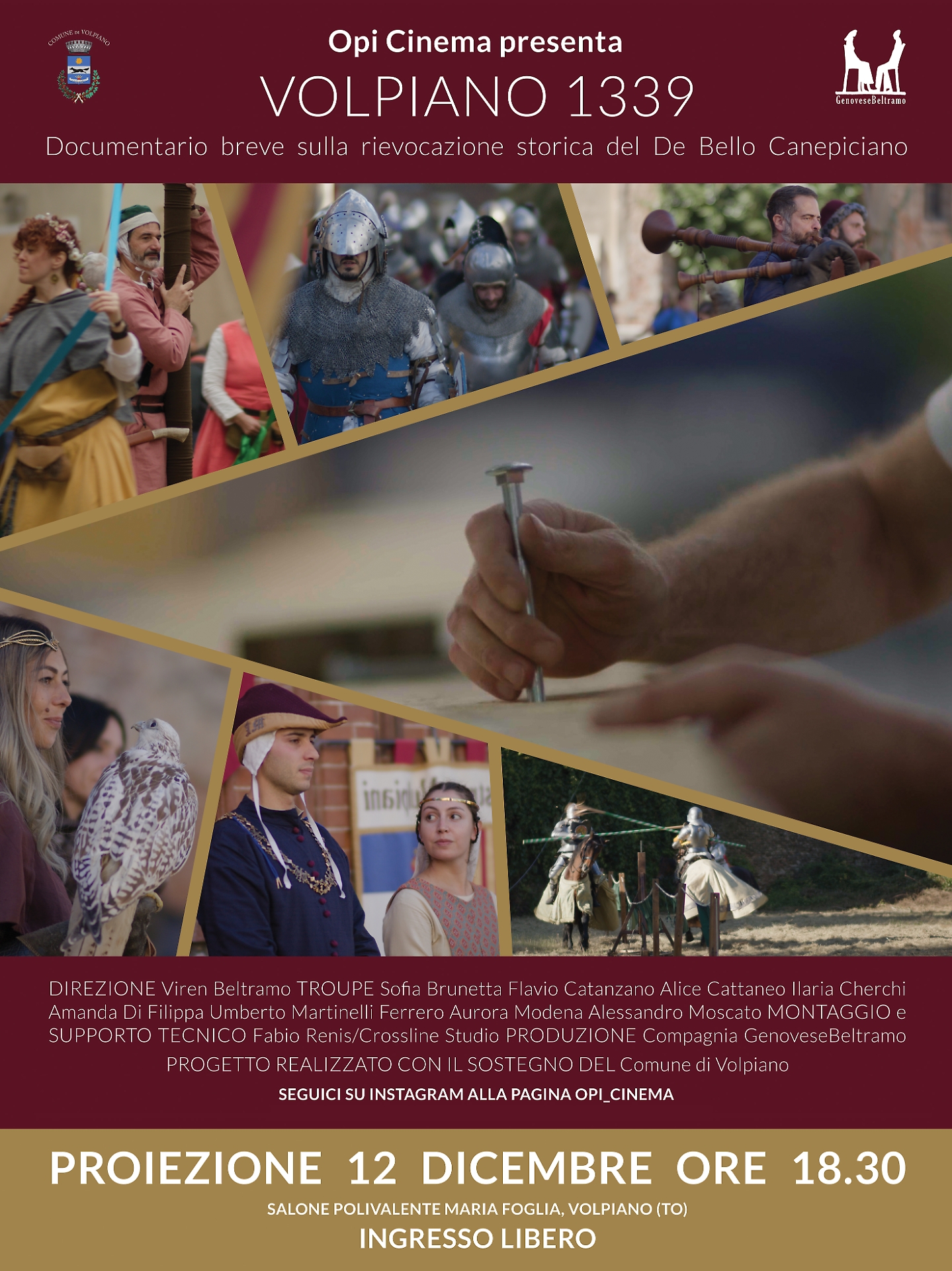Il prossimo 12 dicembre 2025, alle ore 18.30, la Sala Polivalente Maria Foglia di Volpiano ospiterà l’anteprima del mini-documentario “Volpiano 1339”, realizzato dai giovani partecipanti al laboratorio di cinematografia Opi Cinema. Questo progetto, che ha visto il coinvolgimento diretto dei ragazzi nel cuore delle attività della rievocazione storica del De Bello Canepiciano, si propone di raccontare una delle iniziative culturali più affascinanti e significative del territorio.