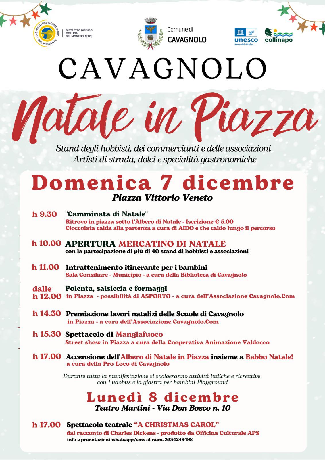 Cavagnolo accende il Natale: mercatini, spettacoli e camminata solidale