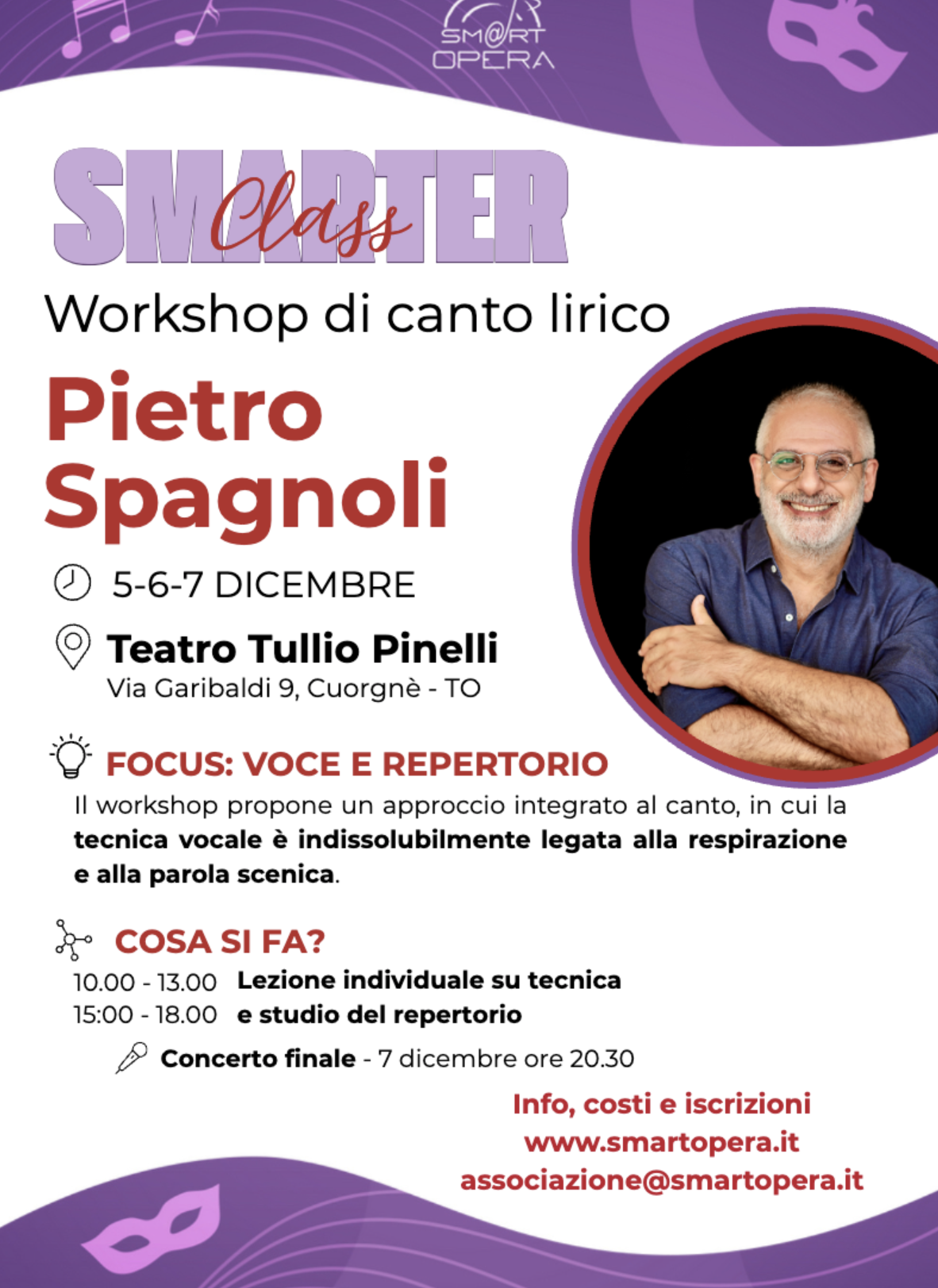 Cuorgnè si prepara a vivere tre giorni che difficilmente verranno dimenticati. L’arrivo di Pietro Spagnoli, baritono tra i più affermati della scena internazionale, ribalta per un fine settimana la routine del Teatro Tullio Pinelli, trasformandolo in uno spazio in cui la voce diventa materia da scolpire, analizzare, reinventare. Non una semplice Masterclass, ma un percorso immersivo che l’associazione Sm@rtOpera ha costruito con l’obiettivo di portare nel Canavese un livello di formazione solitamente riservato ai grandi centri della lirica.