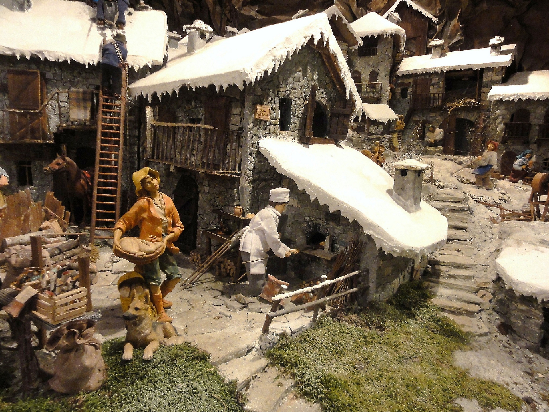 La particolarità del presepe è la sua struttura meccanica: decine di personaggi animati riproducono scene di vita contadina e montanara, riportando in movimento antichi mestieri che appartengono più alla memoria che al presente. I costruttori hanno lavorato negli anni per integrare sistemi di illuminazione capaci di simulare il ciclo naturale della giornata, dall’alba alla notte, fino all’accensione delle stelle e alla comparsa della stella cometa. La fitta nevicata scenografica, che dà nome all’opera, è l’elemento che più ha contribuito a renderla riconoscibile: una scelta artistica che non punta all’effetto speciale, ma a un’atmosfera precisa, in equilibrio tra devozione popolare e ricostruzione narrativa.