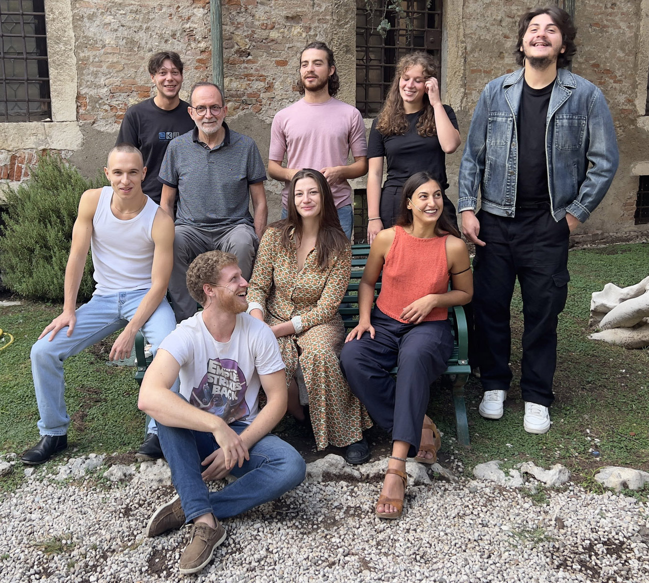 Il regista Gabriele Vacis con gli attori di Potenziali Evocati Multimediali PoEM