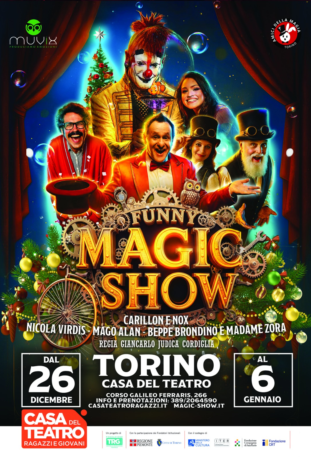 Dal 26 dicembre 2025 al 6 gennaio 2026 la magia torna protagonista a Torino, alla Casa del Teatro Ragazzi e Giovani, con il ritorno di Funny Magic Show, lo spettacolo delle Feste pensato per tutta la famiglia che lo scorso anno ha registrato oltre 6.500 presenze. Un successo che ha spinto gli organizzatori a riproporre l’appuntamento in una versione completamente rinnovata, tra incanto, divertimento e meraviglia, in un viaggio che mescola comicità, illusionismo, esperimenti di trasmissione del pensiero, sand art e spettacolari bolle di sapone. Anche a Capodanno, con una serata speciale.