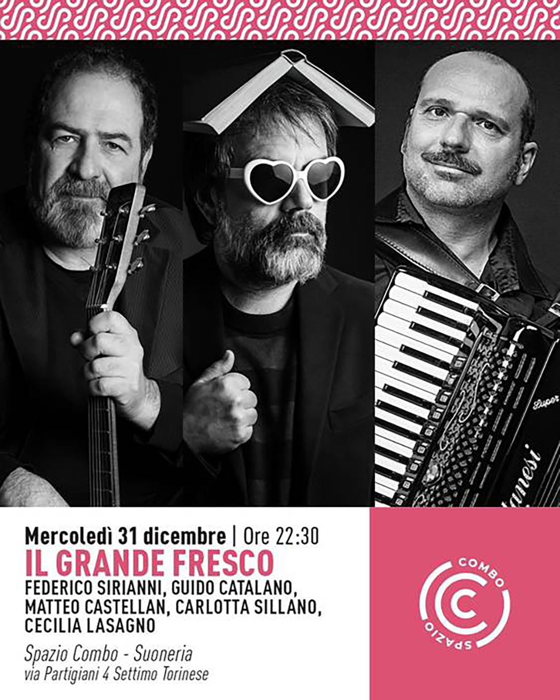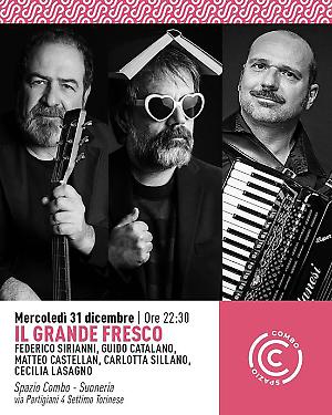 Accanto a loro ci sarà una novità importante: Matteo Castellan, polistrumentista, al pianoforte e alla fisarmonica. Prende il posto di Matteo Negrin, storico "terzo uomo" del gruppo, contribuendo a rinnovare il suono e l’atmosfera dello show senza tradirne lo spirito originale. La serata promette di essere un mix esplosivo di poesia, musica, ironia e follia. Non mancheranno le poesie stralunate, intense e divertenti di Catalano, le canzoni romantiche, oniriche e taglienti di Sirianni, e le rubriche che hanno fatto la storia dello spettacolo, come l’indimenticabile “I grandi classici della canzone internazionale tradotti da Google”. Il pubblico potrà ritrovare tutto ciò che ha reso Il Grande Fresco un fenomeno: lo humor surreale, l’intesa tra gli artisti, il gusto per la sorpresa e la capacità di alternare risate e commozione in un equilibrio unico nel suo genere. Non è solo un ritorno: è una festa. Una notte speciale per chi ha amato lo spettacolo, per chi ne ha solo sentito parlare, e per chi vuole accogliere il 2026 con qualcosa di completamente diverso.