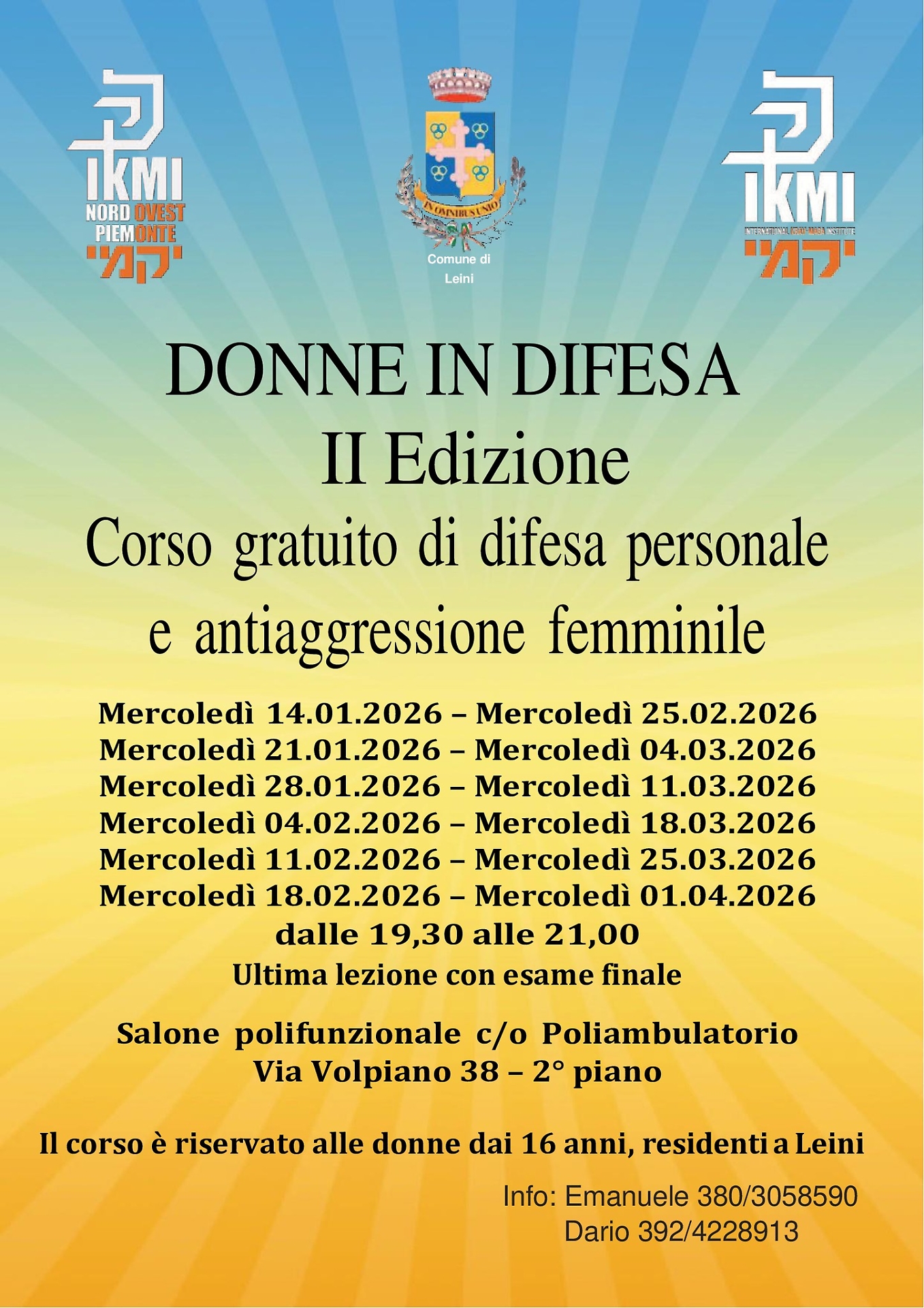 Con iniziative come questa, Leini si conferma una città impegnata a rafforzare il senso di comunità e di sicurezza per le proprie cittadine, offrendo loro strumenti concreti per affrontare le sfide quotidiane con maggiore consapevolezza e protezione.
