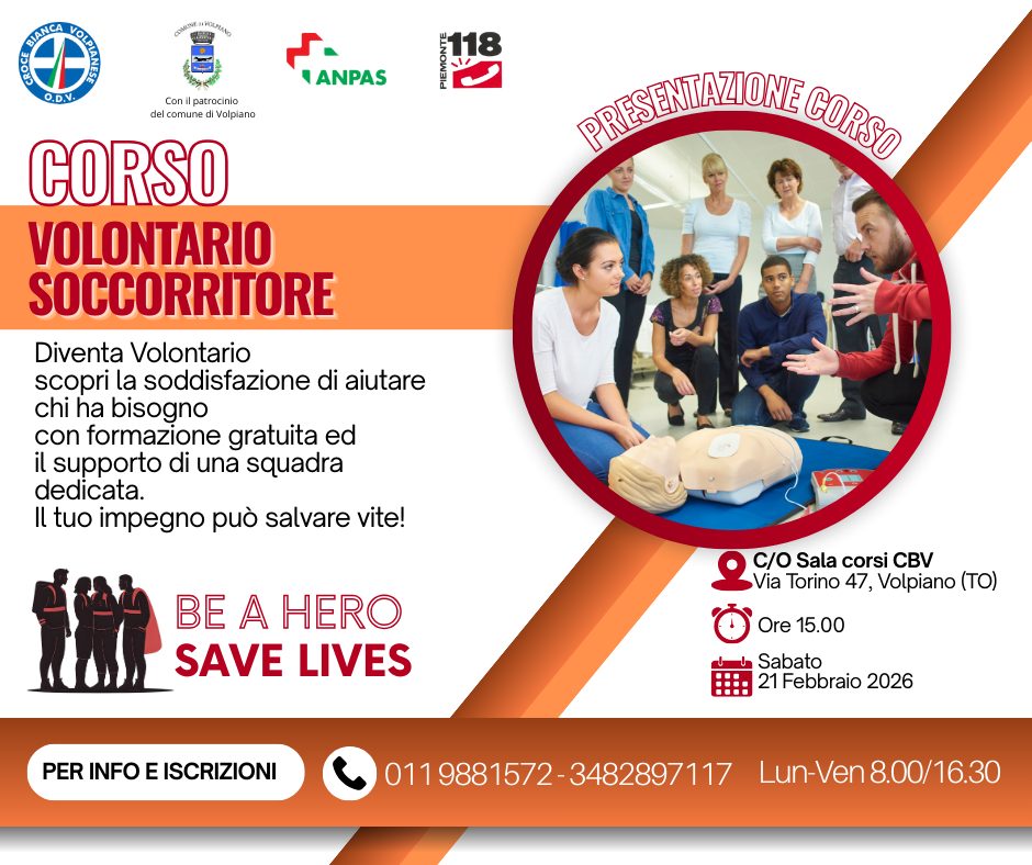 Il corso è aperto a tutti i cittadini maggiorenni interessati ad apprendere le tecniche di primo soccorso e disponibili a svolgere attività di volontariato. Per iscriversi è possibile compilare il modulo online oppure contattare la sede della Croce Bianca Volpianese al numero 011 9881572 o al 348 2897117, dal lunedì al venerdì, dalle 8.00 alle 16.30.
