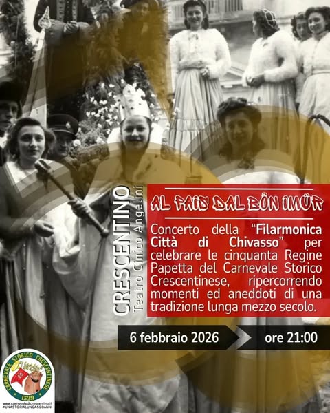 A dare il via alla serata sarà la Filarmonica Città di Chivasso, storica istituzione musicale del territorio. Con un repertorio che spazia dai brani classici alle musiche popolari piemontesi, la filarmonica accompagnerà il pubblico in un viaggio musicale tra storia e allegria, rendendo omaggio alle Regine Papetta e al Carnevale Storico Crescentinese.