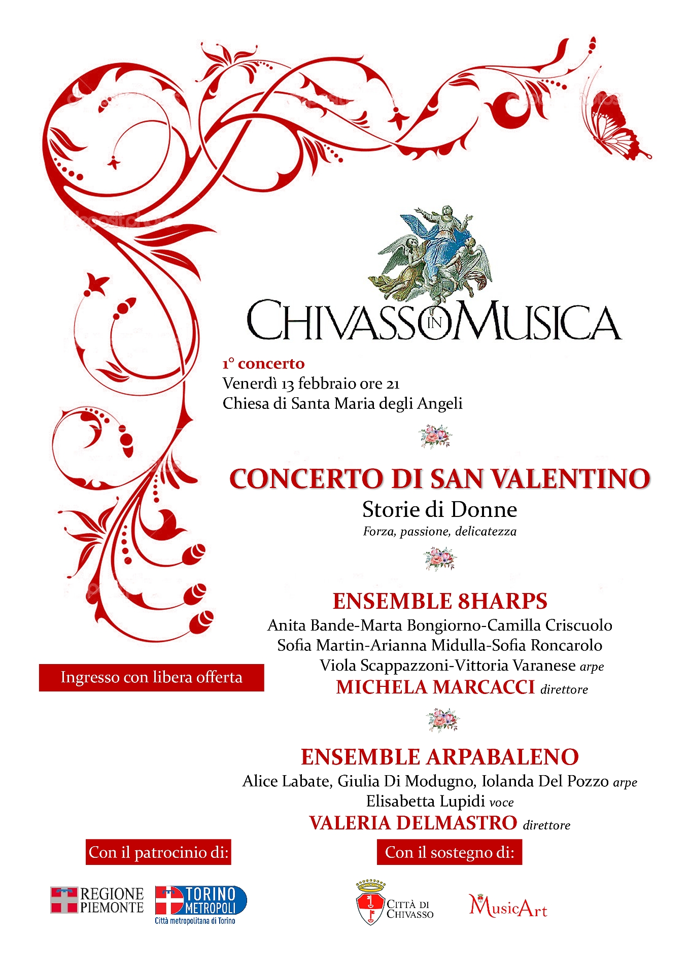 Chivasso in Musica 2026 prende il via con il Concerto di San Valentino, in programma venerdì 13 febbraio alle ore 21, nella chiesa di Santa Maria degli Angeli. Un’apertura tutta al femminile per la nuova stagione musicale targata MusicArt 2026, sostenuta dal Comune di Chivasso e patrocinata dalla Città metropolitana di Torino, che accompagnerà il pubblico con cinque concerti tra febbraio e settembre.