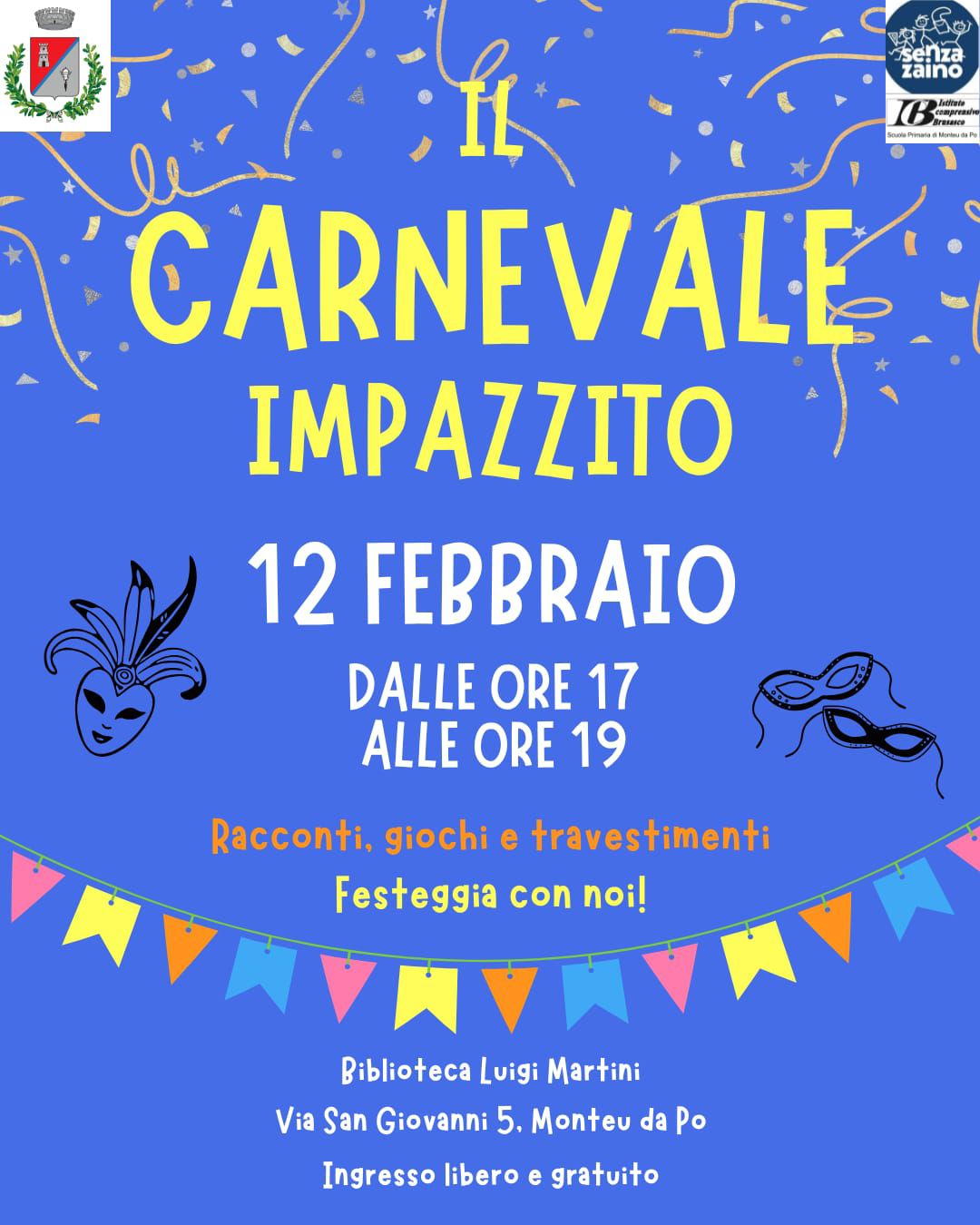 Alla Biblioteca Civica “Luigi Martini” di Monteu da Po il Carnevale arriva in anticipo con un pomeriggio pensato per i più piccoli e per le famiglie. Mercoledì 12 febbraio, dalle 17 alle 19, gli spazi di via San Giovanni 5 ospiteranno “Il Carnevale Impazzito”, un appuntamento dedicato a bambini e bambine all’insegna di storie, giochi e travestimenti.