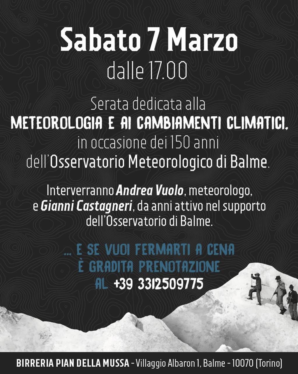 L’incontro assume un significato particolare perché coincide con i 150 anni dello storico Osservatorio Meteorologico di Balme, una delle realtà più longeve nel panorama delle rilevazioni alpine piemontesi. Un presidio scientifico che, dal 1876 a oggi, ha raccolto dati su temperature, precipitazioni, nevicate e fenomeni estremi, diventando un punto di riferimento per la conoscenza del clima locale.