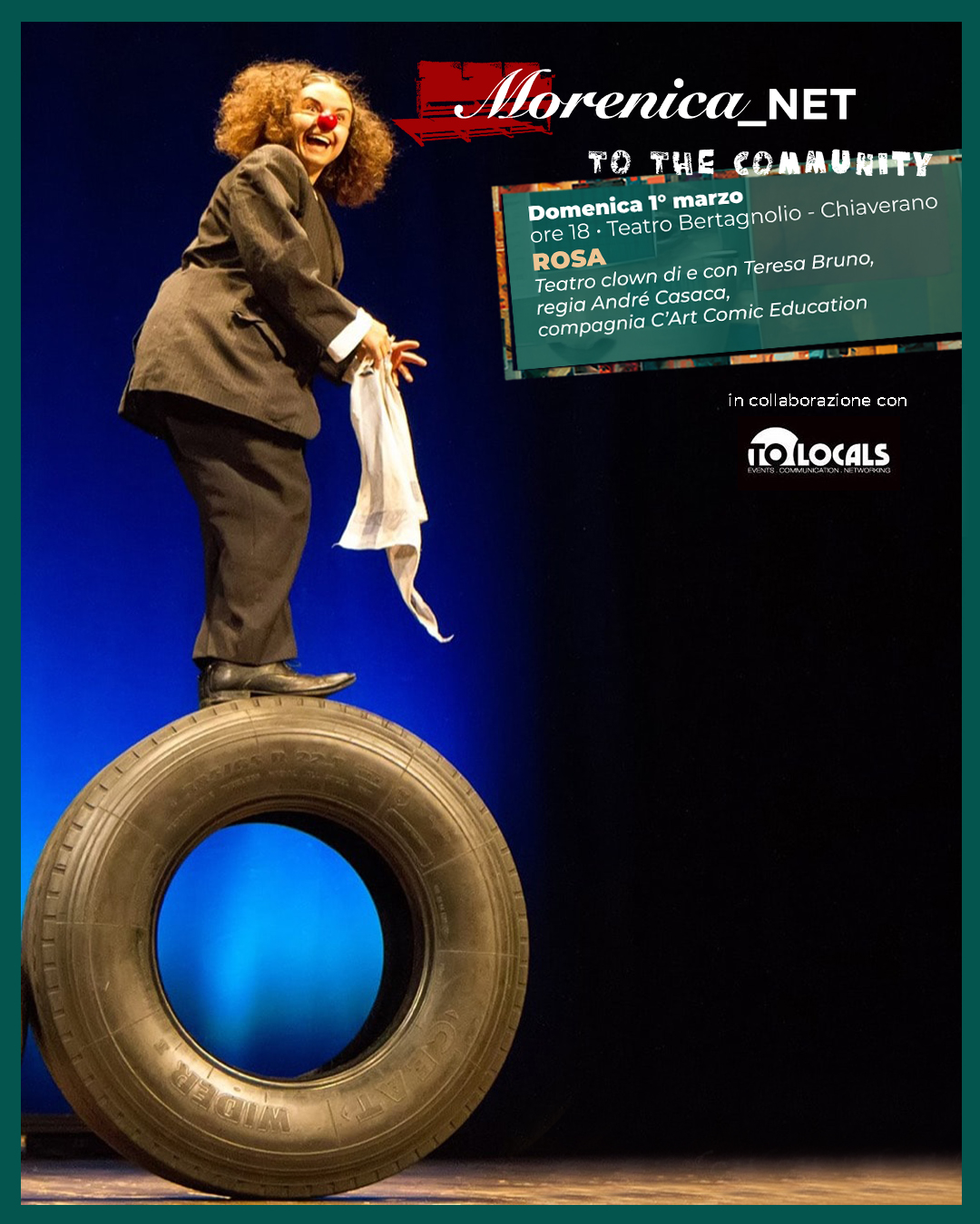 Archiviato lo storico Carnevale di Ivrea, la stagione 2025/26 di Morenica_NET – To The Community riparte e proseguirà fino a maggio 2026 tra Ivrea e Chiaverano. Il primo appuntamento dopo la pausa di febbraio è fissato per domenica 1° marzo alle ore 18 al Teatro Bertagnolio di Chiaverano, con lo spettacolo “ROSA” della compagnia toscana Teatro C’Art.