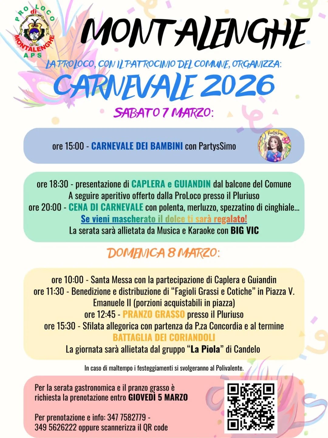 Montalenghe si prepara a vivere un fine settimana all’insegna della tradizione e della festa. La Pro Loco, con il patrocinio del Comune, ha ufficializzato il programma del Carnevale 2026, in calendario sabato 7 e domenica 8 marzo, con un cartellone che unisce momenti dedicati ai bambini, appuntamenti gastronomici e riti simbolici della storia locale.