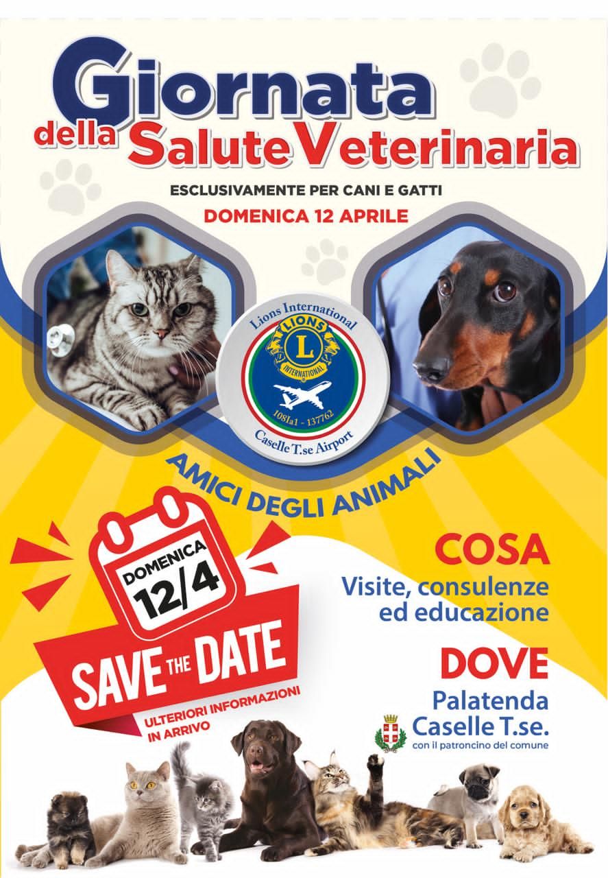 Una mattinata dedicata alla salute e al benessere degli animali domestici si terrà domenica 12 aprile al Palatenda di Caselle Torinese, grazie all’iniziativa del Lions Club Caselle T.se Airport.