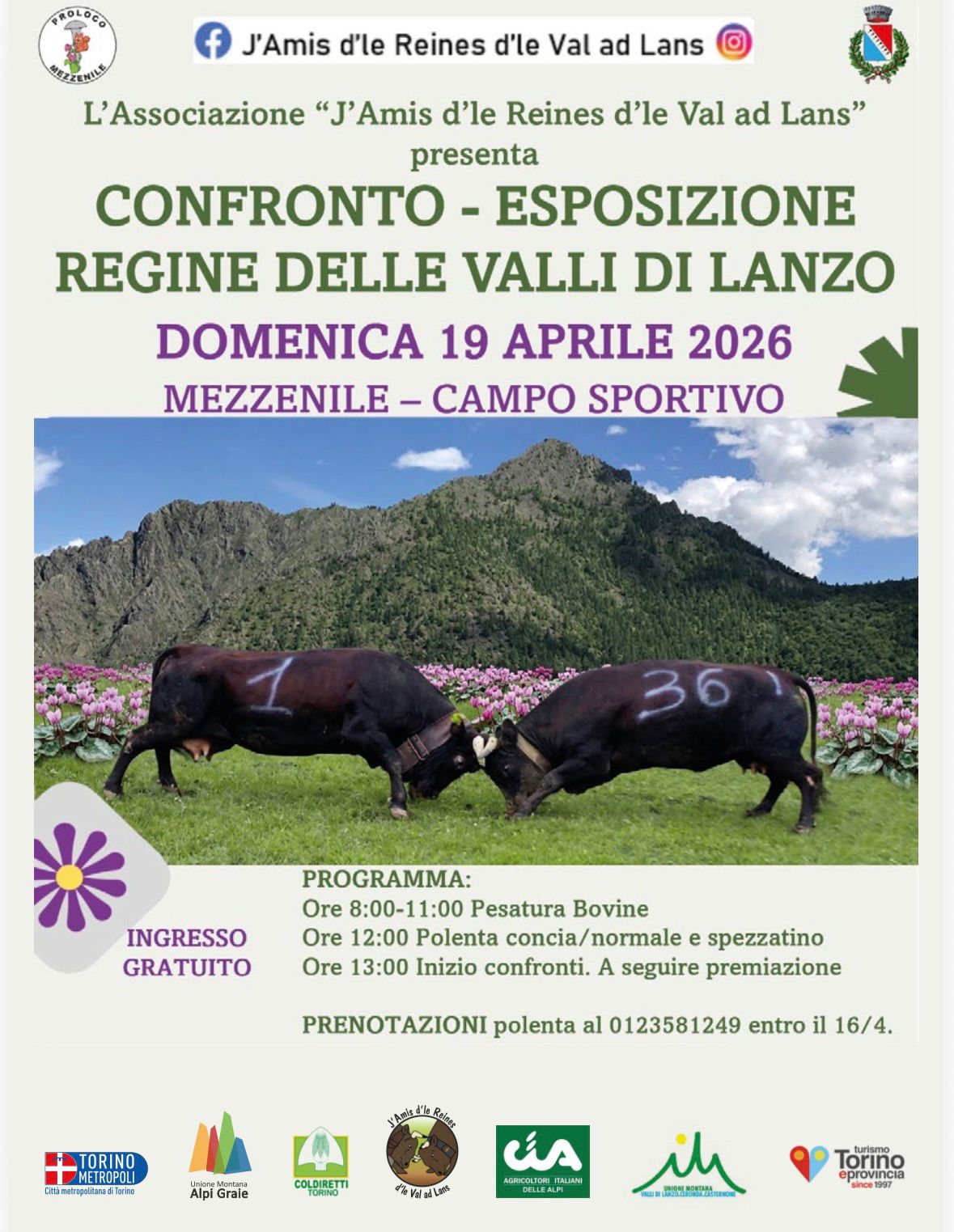 La manifestazione è promossa dall’associazione “J’Amis d’le Reines d’le Val ad Lans”, in collaborazione con la Pro Loco di Mezzenile, e si svolgerà presso il campo sportivo del paese.
