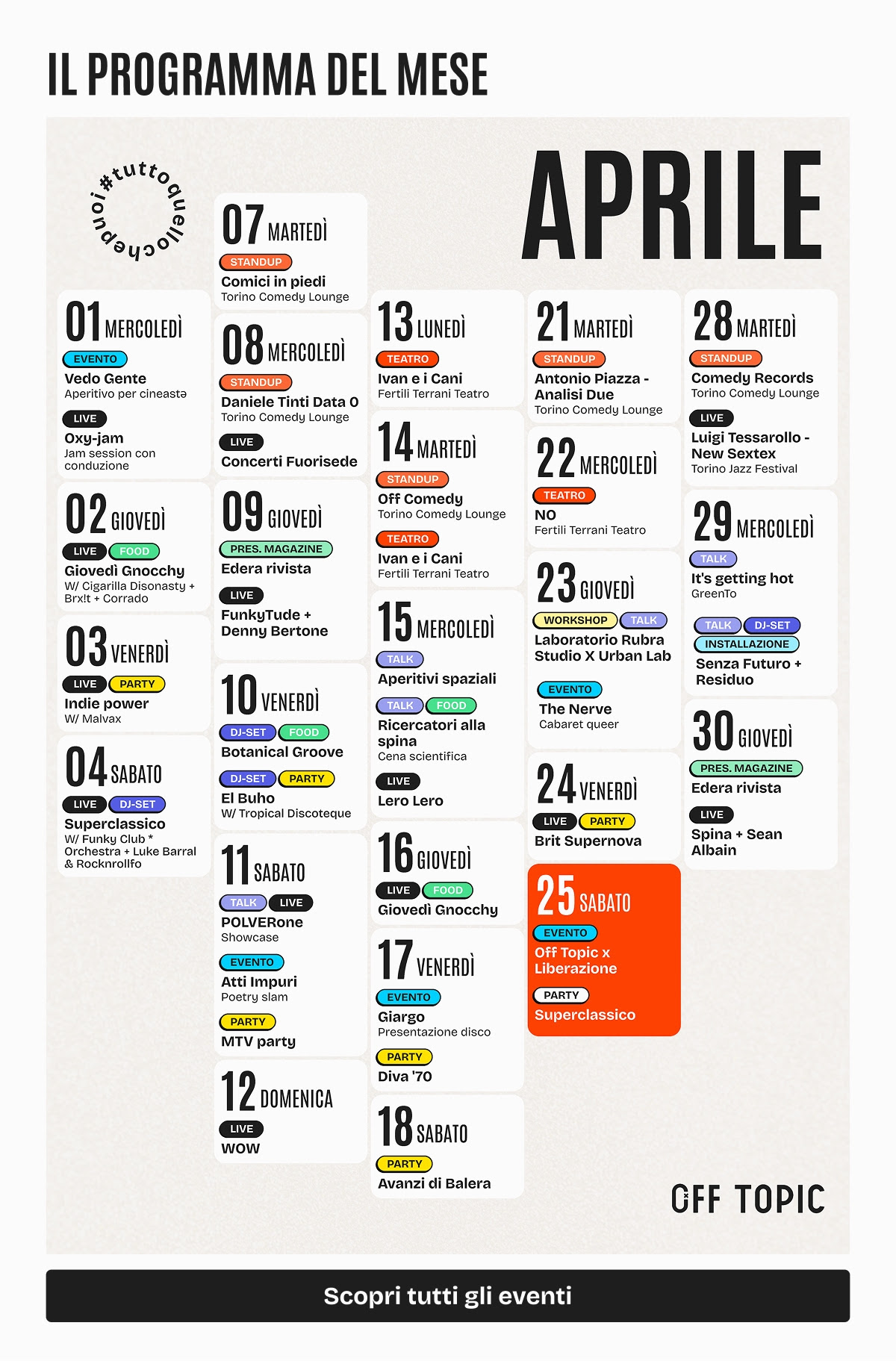 Per informazioni e aggiornamenti: http://offtopictorino.it e https://www.facebook.com/offtopictorino