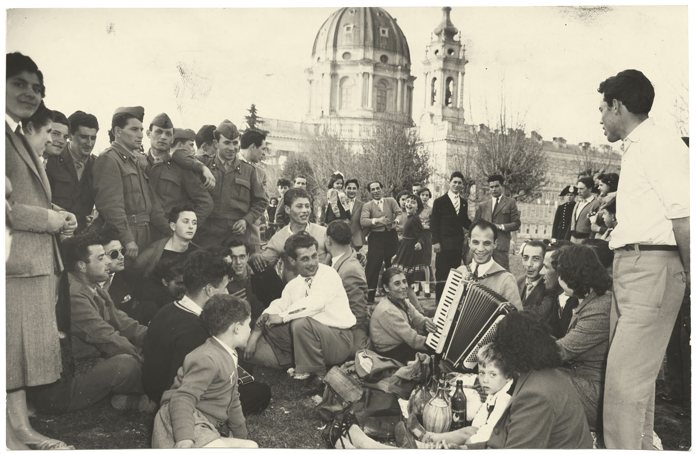 Il cibo diventa anche racconto di tradizione e convivialità, come nelle immagini degli anni Cinquanta che immortalano le “merende” pasquali e i picnic sulle colline di Superga e lungo i fiumi.