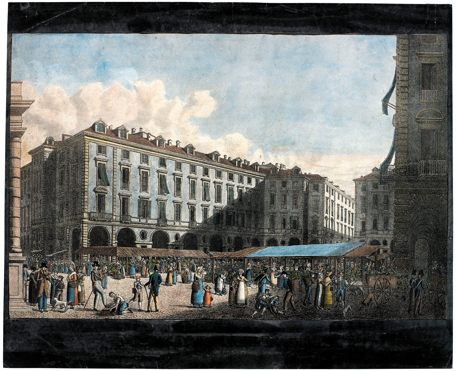 Ampio spazio è dedicato ai mercati, cuore pulsante della vita quotidiana: dalle bancarelle nelle piazze storiche come piazza Palazzo di Città, piazza San Carlo e piazza Carlina, fino alla nascita di Porta Palazzo nel 1836, dopo le nuove norme igienico-sanitarie introdotte a seguito di un’epidemia di colera, con un editto firmato da Michele Benso di Cavour.