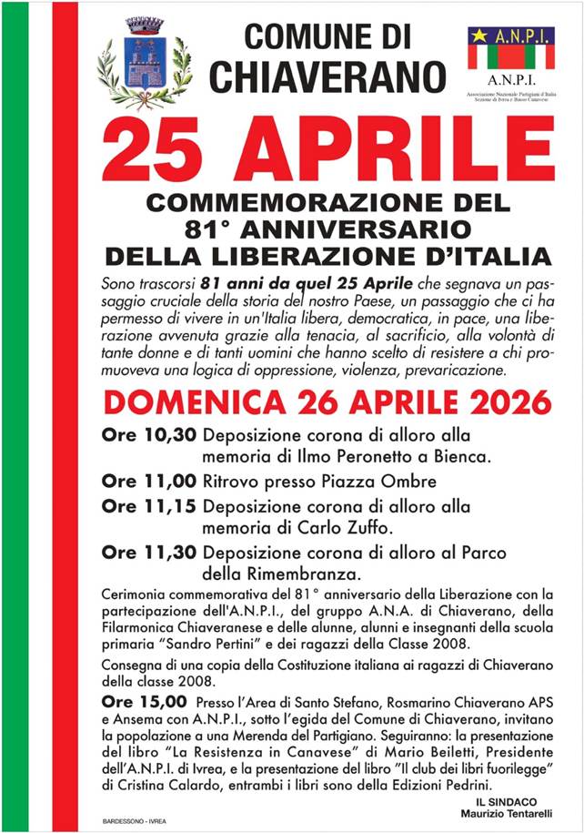 Un percorso che non si limita al rito, ma coinvolge anche le nuove generazioni. Alla commemorazione parteciperanno infatti l’ANPI, il gruppo ANA di Chiaverano, la filarmonica locale e gli studenti della scuola primaria “Sandro Pertini”, insieme ai ragazzi della classe 2008. Proprio a loro sarà consegnata una copia della Costituzione italiana, in un gesto simbolico che lega la memoria della Resistenza ai valori fondanti della Repubblica.