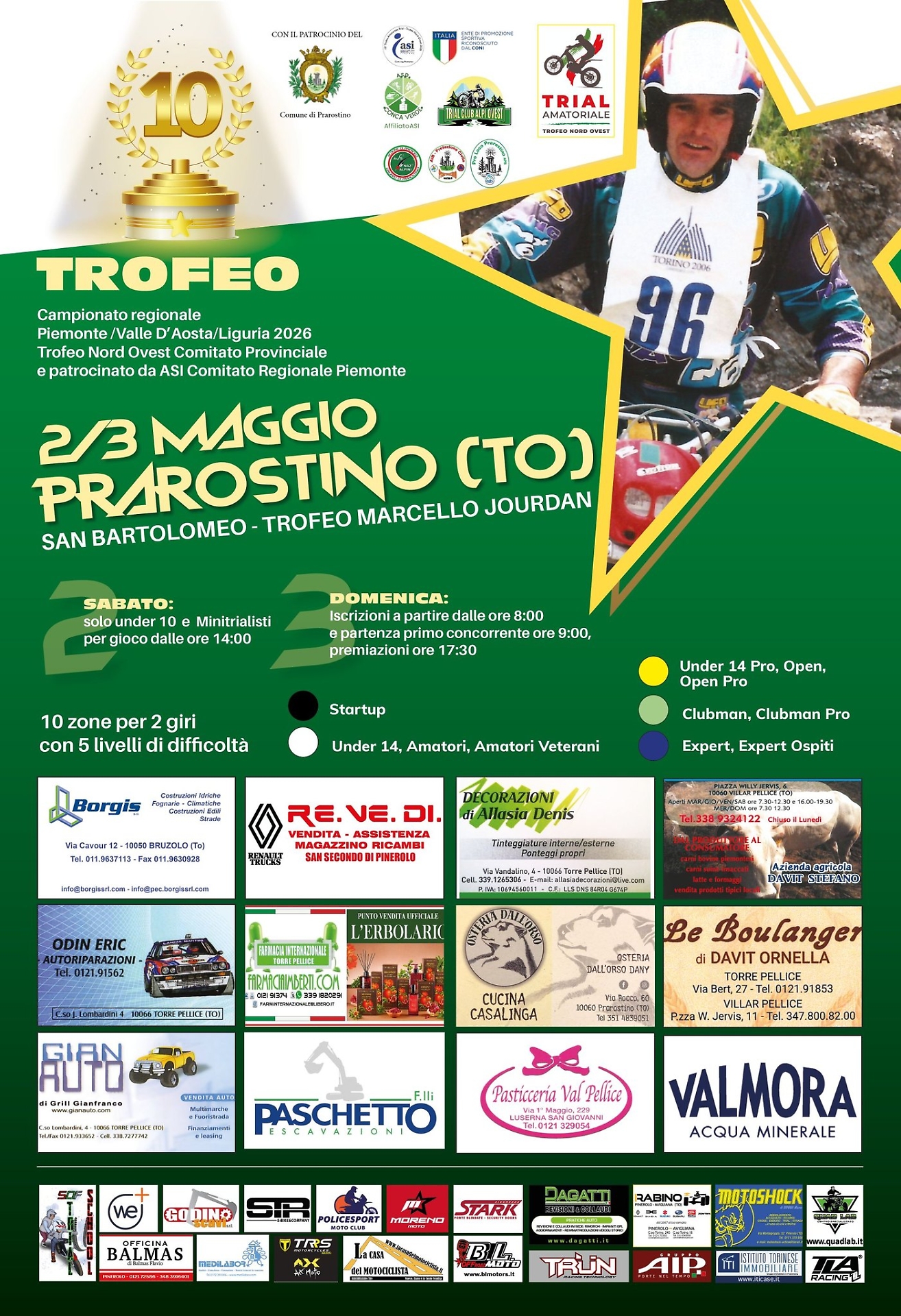 Le attività inizieranno già sabato 2 maggio con una competizione dedicata ai più piccoli, mentre la gara principale si svolgerà domenica mattina, con partenza alle 9. Il percorso si snoderà anche attraverso tratti già noti agli appassionati, utilizzati durante la tradizionale Due Giorni dei Pionieri, appuntamento autunnale del trial piemontese.