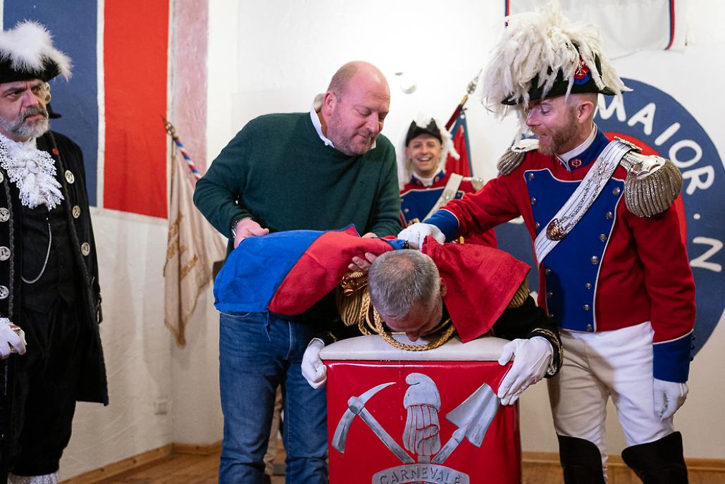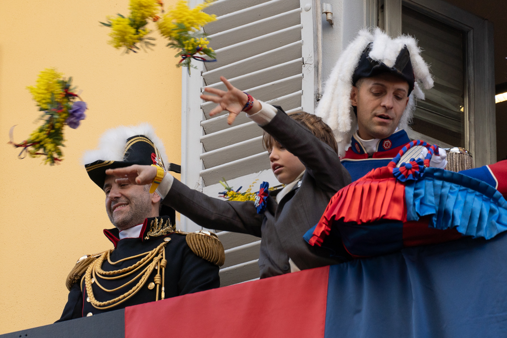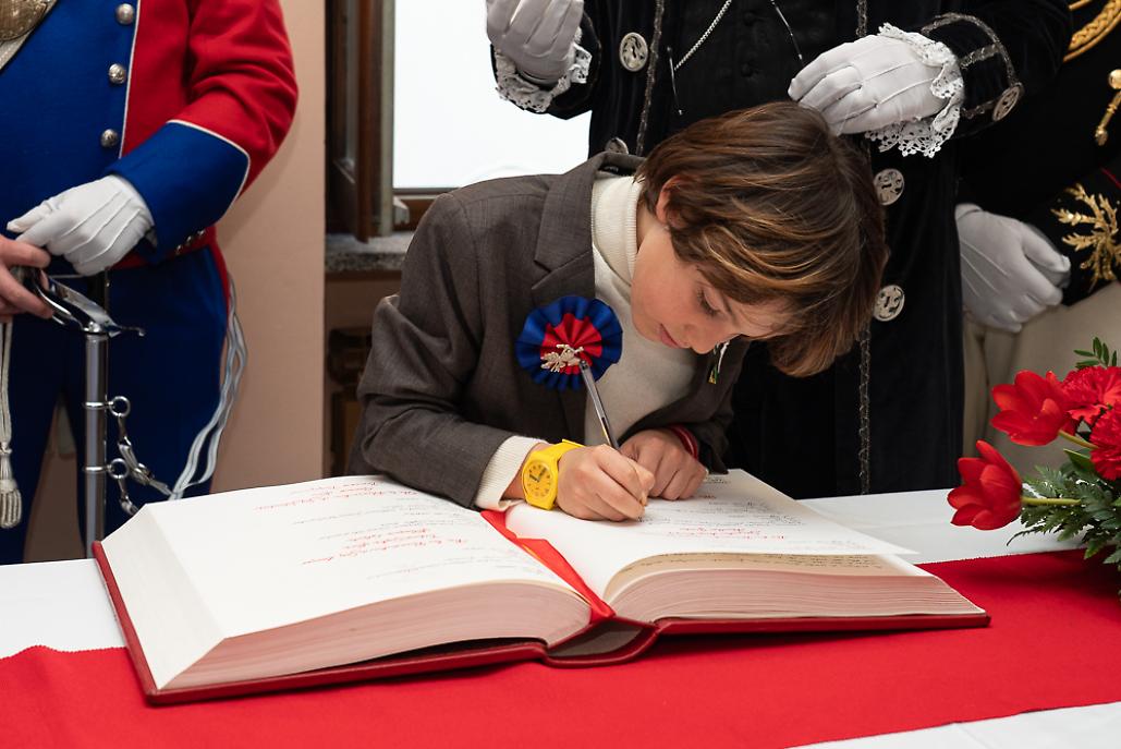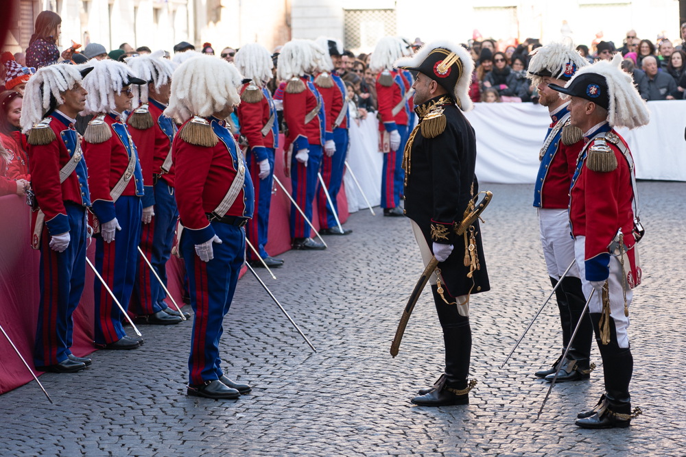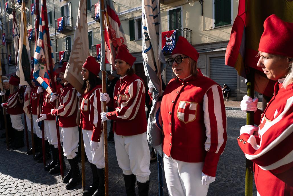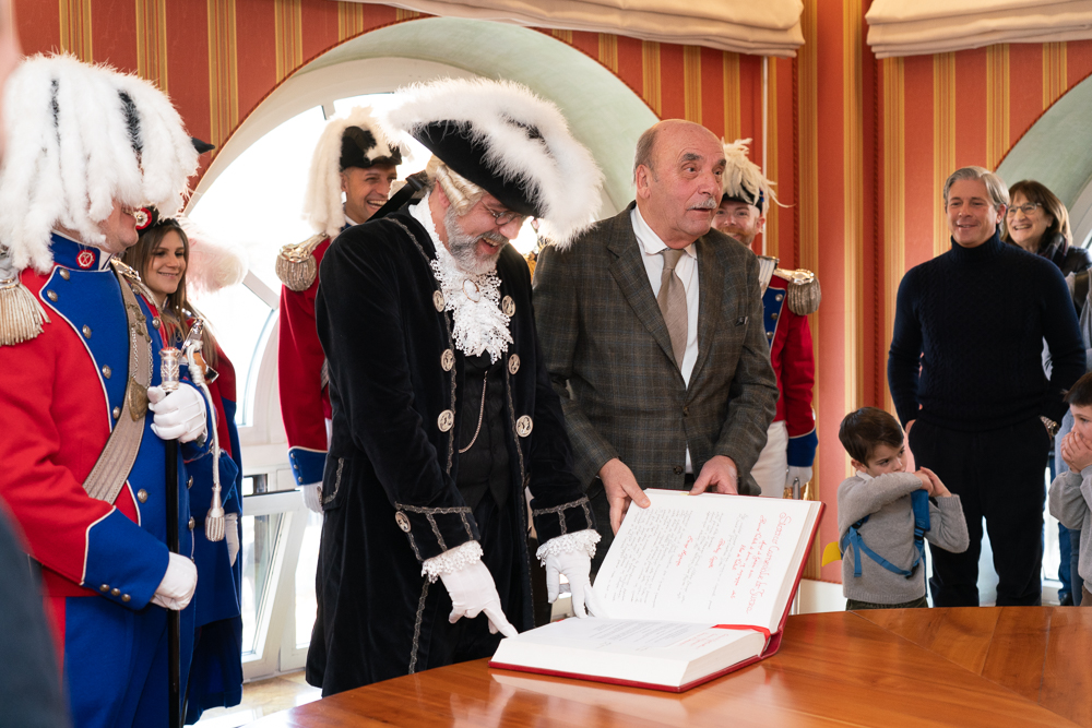 In Piazza Freguglia si è svolta poi la Presa in consegna del Libro dei Verbali, la cerimonia che sancisce la consegna del Libro dei Verbali dal Cancelliere al suo Sostituto, affinché lo conservi per tutto il periodo carnevalesco dando pubblica lettura di quanto in esso annotato. A seguire in piazza di città si è svolta la Prise du Drapeau, cerimonia militare della consegna della bandiera all’Alfiere dello Stato Maggiore all’inizio di ogni Campagna.