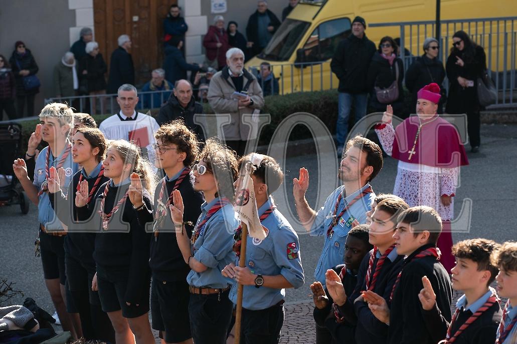 Alle ore 15:15, il corteo ha attraversato la città accompagnato dal Gruppo Pifferi e Tamburi dello Storico Carnevale di Ivrea, che con i loro strumenti hanno scandito il passo del vescovo lungo il tragitto verso la Cattedrale di Santa Maria Assunta. Le strade, gremite di fedeli, hanno vibrato di suoni e colori mentre la comunità ha seguito con attenzione e partecipazione il nuovo pastore. L’arrivo alla Cattedrale è stato un crescendo di emozioni: un sagrato gremito, il suono delle campane a festa, lo sventolio delle bandiere e lo sguardo attento di chi ha voluto essere presente per questo momento storico.