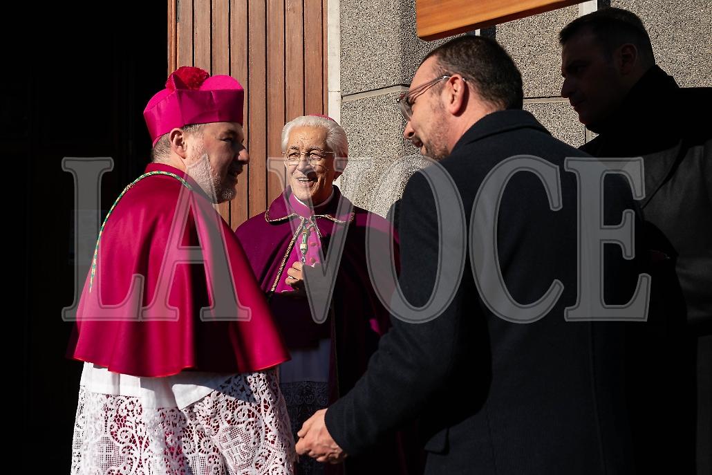 Sul sagrato, il sindaco di Ivrea, Matteo Chiantore, ha rivolto un caloroso saluto a nome della città e dei sindaci del Canavese. "Siamo qui, in questa piazza, uniti ai cittadini, agli amministratori pubblici e ai rappresentanti delle istituzioni, per iniziare un percorso che ci auguriamo sia lungo e ricco di frutti sia collettivi che personali", ha dichiarato. Il primo impatto di Monsignor Salera con la città è coinciso con un momento particolare: "Un po' anomalo, ma per questo curioso sarà il suo impatto con Ivrea, in quanto coincidente con lo Storico Carnevale. Un’occasione speciale per conoscere la nostra città nella sua espressione più spontanea, vivace, colorata e battagliera", ha aggiunto il sindaco.