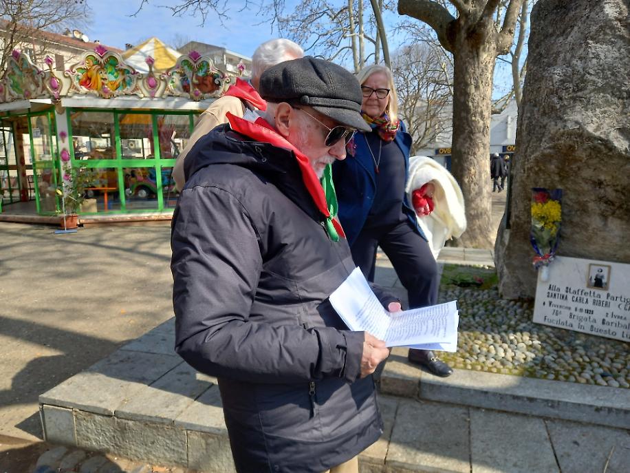 Poi il cammino ha fatto tappa al Cippo dedicato a Santina "Carla" Riberi, martire della Resistenza, fucilata a soli 18 anni dai fascisti del battaglione Barbarigo. Una vita spezzata troppo presto, un sacrificio che ancora oggi scuote le coscienze. Santina aveva un figlio di un anno e mezzo, per lui sognava un mondo senza guerra, senza dittatura. Ma il suo sogno fu spento dalla ferocia fascista. Le sue ultime ore furono segnate dalla tortura, dal dolore, ma non dal tradimento. "Immagino che l'essere donna e giovanissima mamma abbia rafforzato gli ideali che la spinsero ad aderire alla Resistenza", ha scritto il nipote Mario in una lettera struggente.