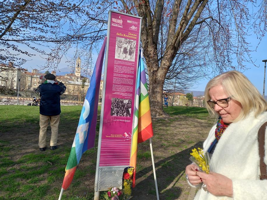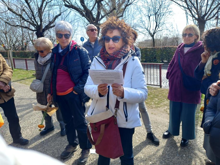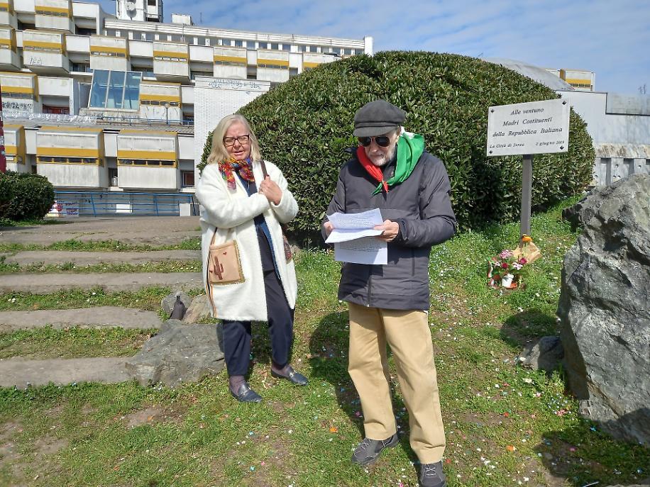 La giornata è iniziata con la posa di fiori e la lettura di brani dedicati a figure femminili che hanno lasciato un segno indelebile nella storia. I partecipanti si sono riuniti ai Giardini Giusiana, per poi spostarsi in piazza Freguglia e successivamente al Parco Dora Baltea, toccando con il cuore e con la mente i luoghi che raccontano la storia delle Donne Deportate, delle 21 Madri Costituenti, della Martire Partigiana Santina Riberi e delle Donne della Resistenza.