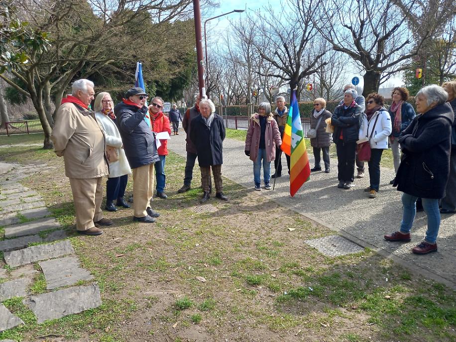 La memoria si è poi spostata alla Targa delle 21 Madri Costituenti, dove si è ricordato il contributo fondamentale delle donne nella scrittura della Costituzione italiana. Tra loro, Nilde Iotti, Teresa Noce, Angelina Merlin, Maria Federici e Angela Gotelli, che entrarono nella Commissione incaricata di redigere la Carta costituzionale. Le loro parole risuonano ancora oggi come un monito: "Tutte noi vi invitiamo a considerarci non come rappresentanti del solito sesso debole e gentile, oggetto di formali galanterie e di cavalleria di altri tempi, ma vi preghiamo di valutarci come espressione rappresentativa di quella metà del popolo italiano che ha pur qualcosa da dire."