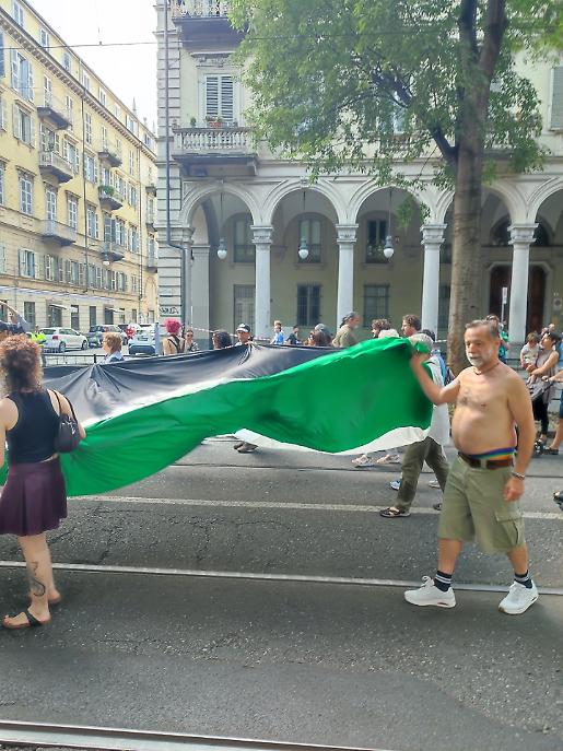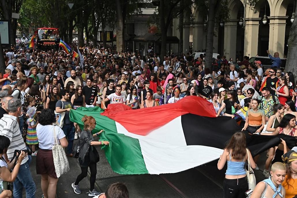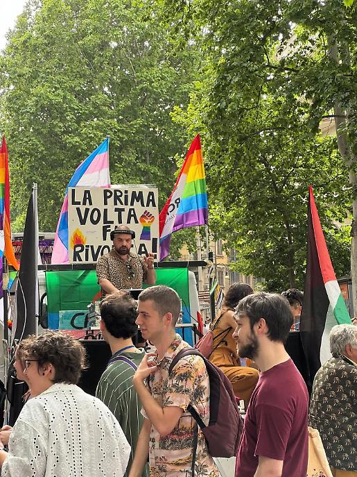 Tra i tanti momenti che hanno punteggiato il corteo, uno dei più simbolici è stato l’arrivo di una lunga bandiera palestinese portata da attivisti e simpatizzanti, per ribadire che la lotta per i diritti non si ferma ai confini dell’identità sessuale o di genere. È una battaglia che riguarda anche la giustizia sociale, i corpi migranti, i diritti negati ovunque nel mondo.