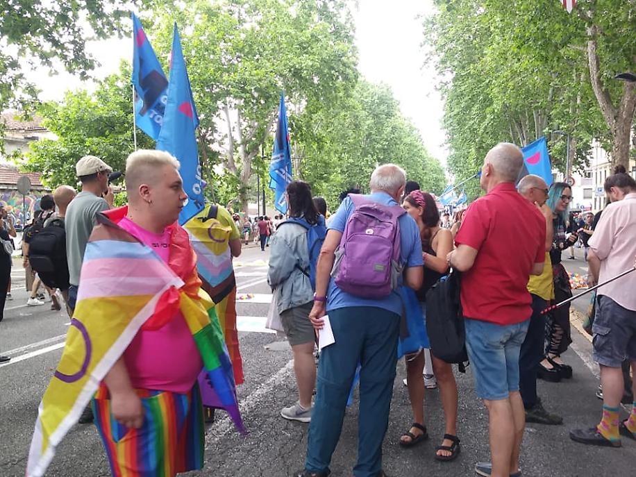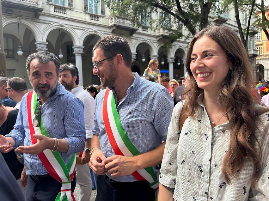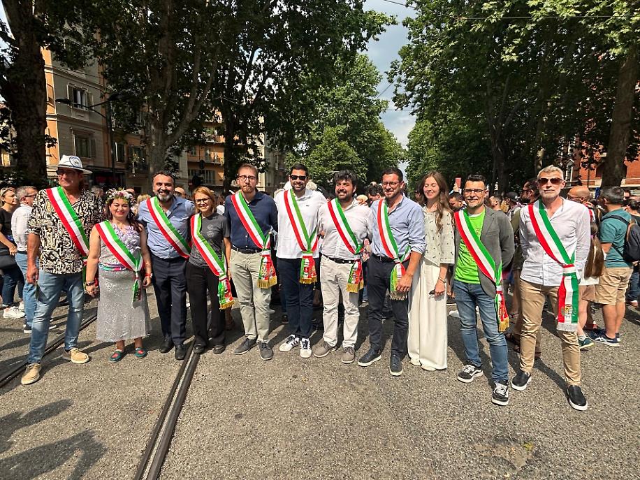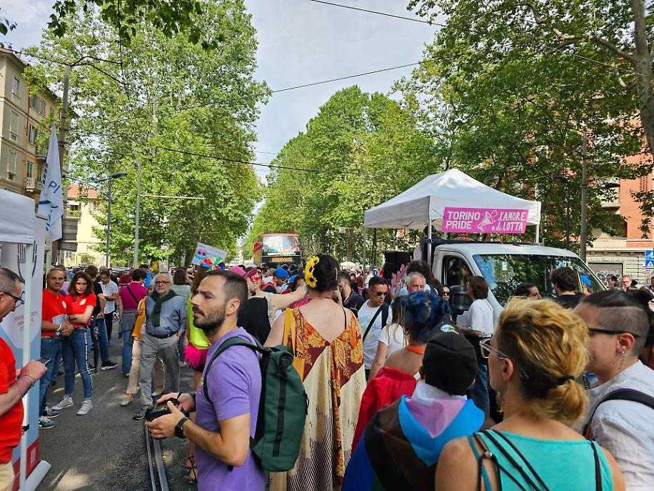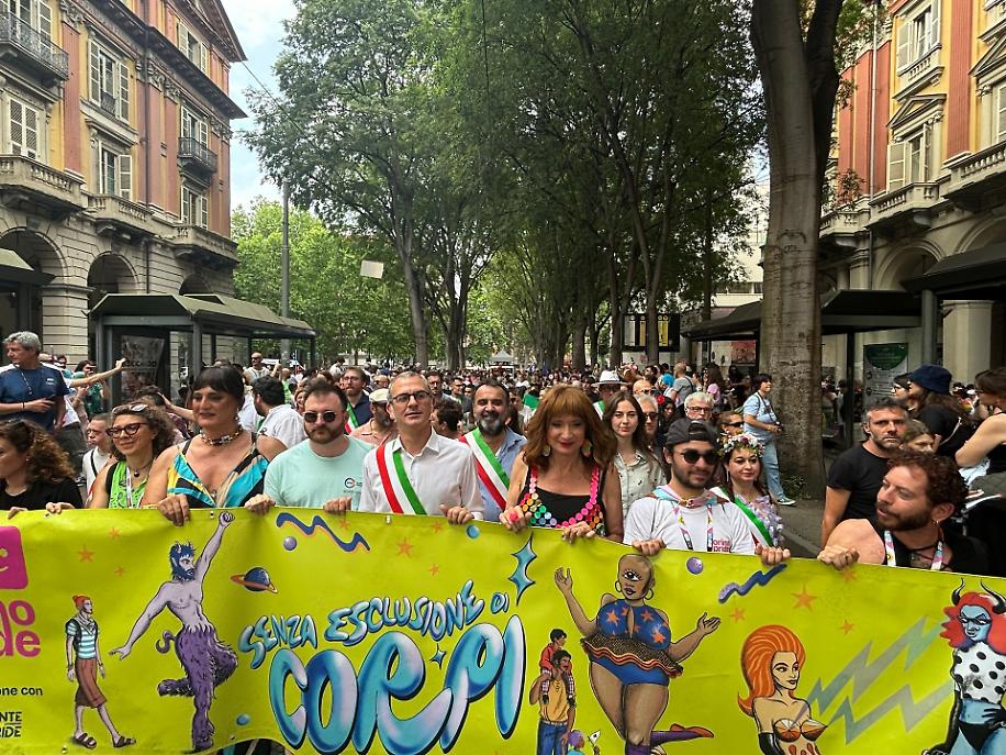 Dietro lo striscione di apertura, le istituzioni. In testa, l’assessore ai Diritti Jacopo Rosatelli, con la fascia tricolore, ha dichiarato che “il Pride è l’orgoglio della città di Torino”, ricordando come la città sia stata pioniera in molte battaglie per i diritti civili: la prima ad avere un servizio dedicato alla comunità LGBT, la prima a riconoscere il diritto di un bambino ad avere due mamme, guida nazionale della rete Ready, e futura sede dell’EuroPride 2027. “Torino da questo punto di vista non tradisce mai”, ha sottolineato Rosatelli, accolto dagli applausi.